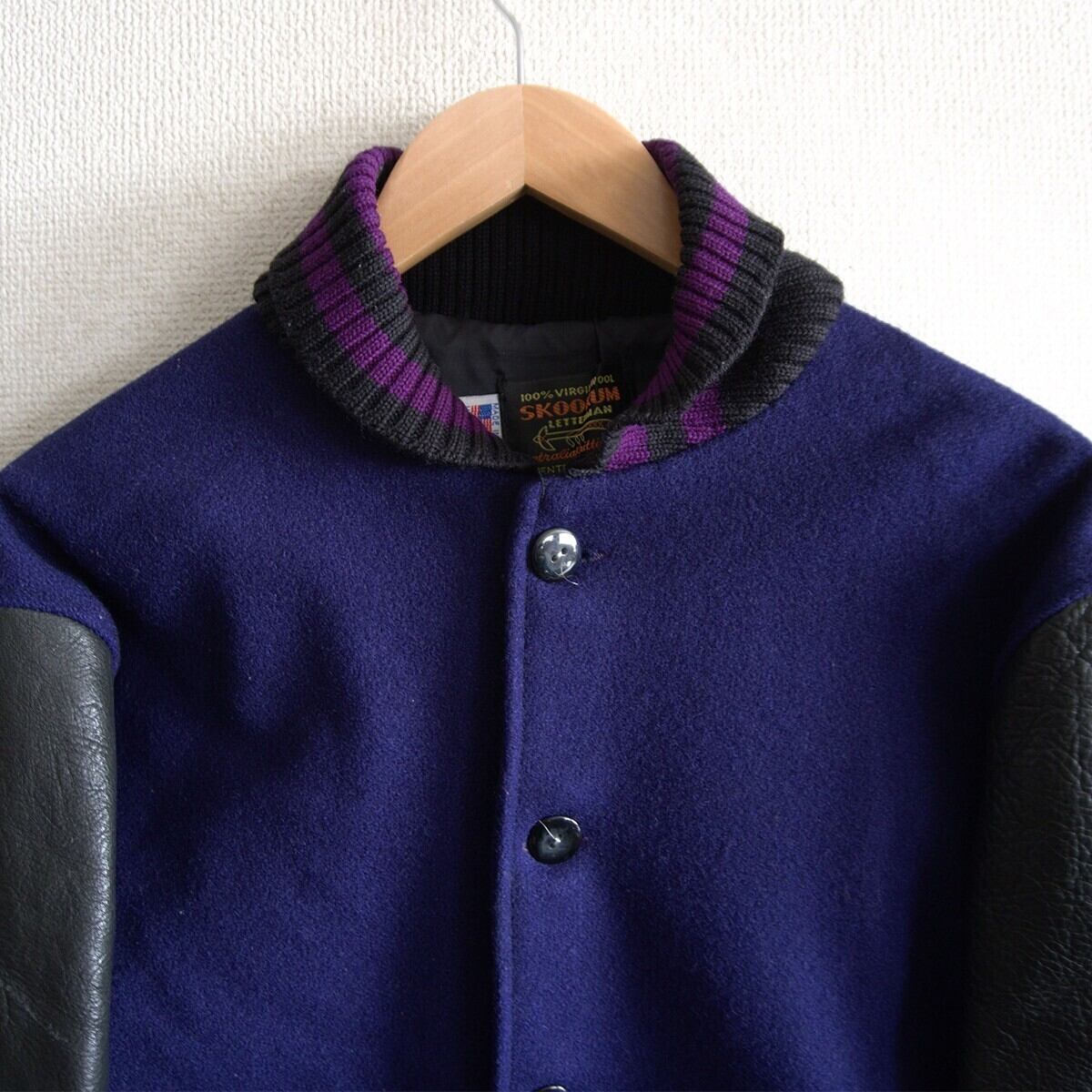 【美品】SKOOKUM【メルトン×レザー スタジャン】40 スクーカム パープル ブラック ジャケット 26020550