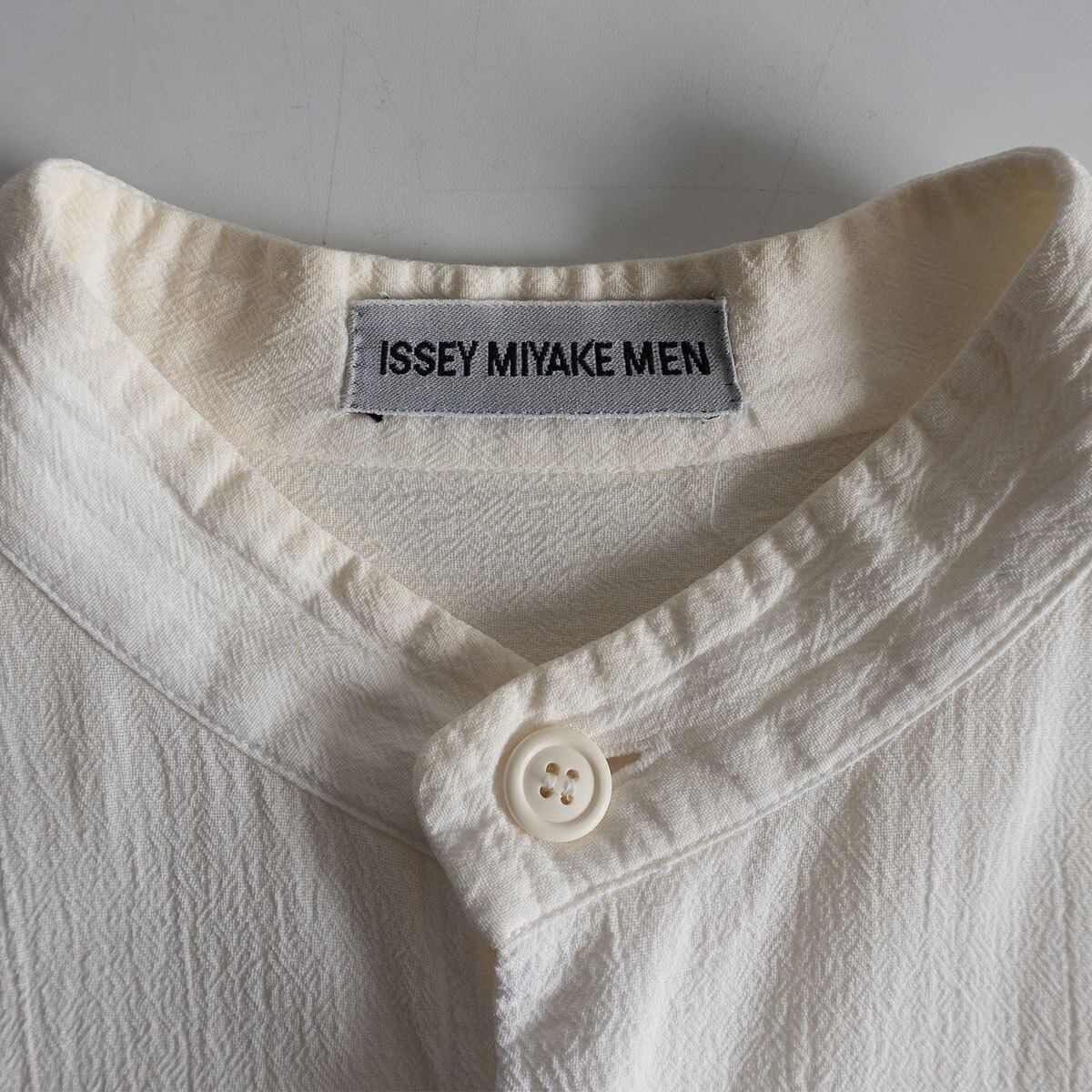 【美品】ISSEY MIYAKE MEN【バンドカラー シャツ】 M ホワイト イッセイミヤケメン 26020654