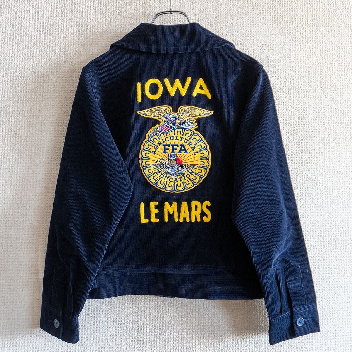 FFAとはFuture Farmars of Americaの頭文字をとった略称でアメリカ合衆国学校農業クラブ連盟のことを指します、『みんなでアメリカの農業の未来を考えていきましょう』という意味になります。その団体のユニフォームとして使用されていたのがこのFFAジャケットです。カラーは紺をベースに前後にはFFAのワッペン後ろにはワッペンの上に各州のチェーンステッチが入っています。お探しの方や気になる方は是非。