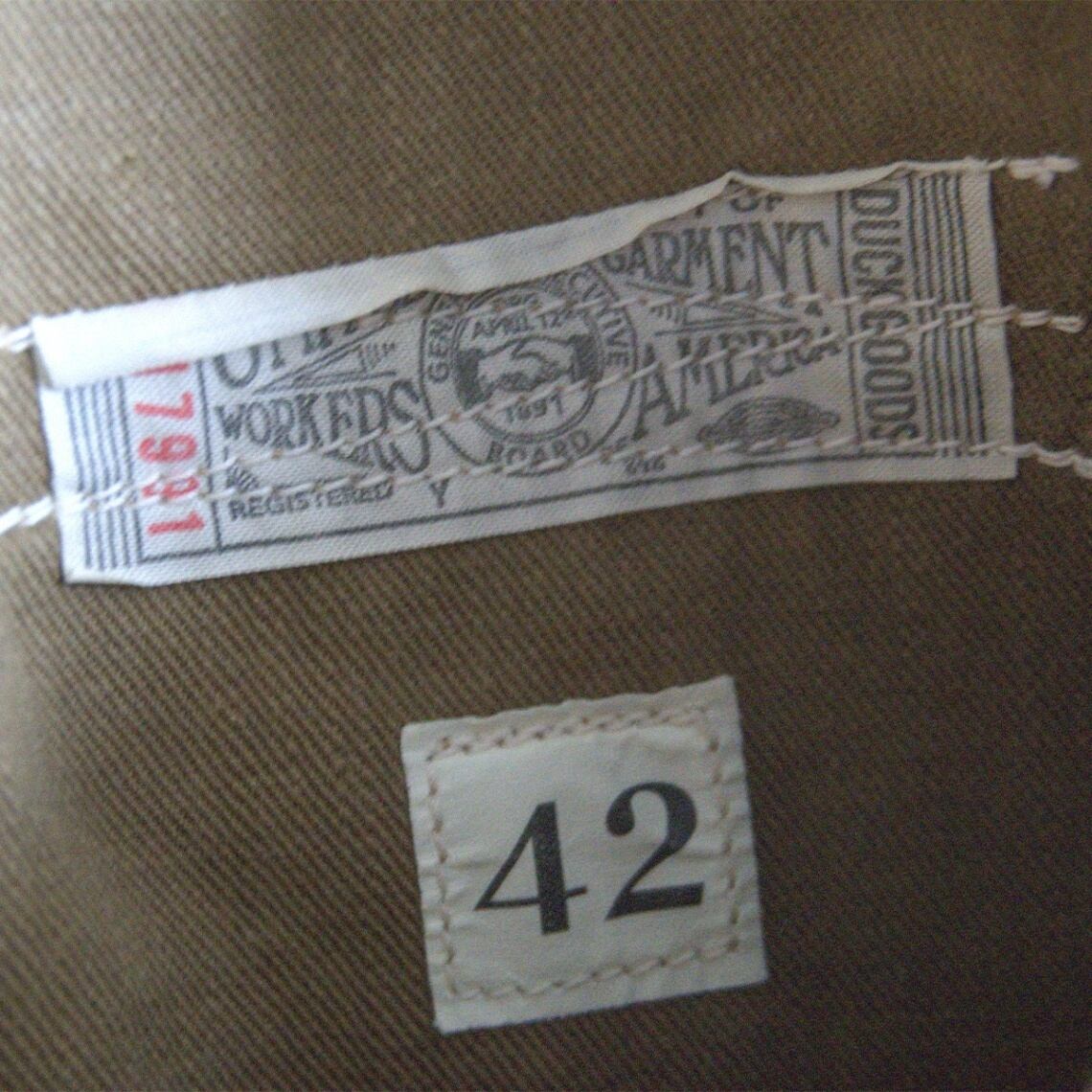 カバーオールの中でも珍しいショート丈のジャケットになります。生地はオリジナル、ヘビー・ウエイトのチノ・クロスを使用しています。