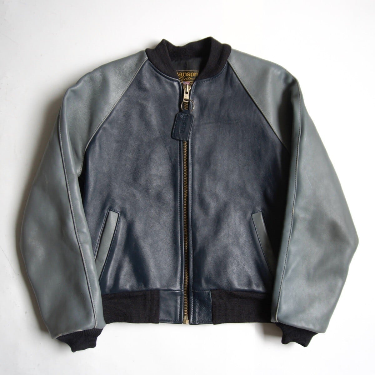 【雰囲気抜群】 VANSON 【TJV オールレザー スタジャン】40 グレー ネイビー ジャケット ワッペン USA製 バンソン 26020804