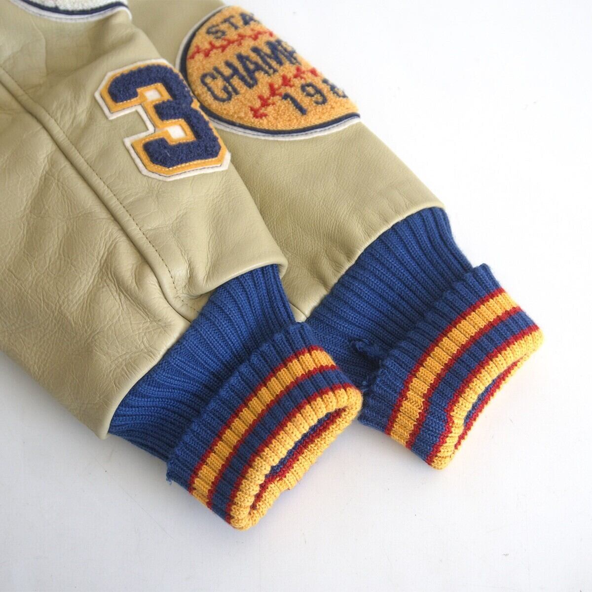 レザースリーブ仕様のスタジャン。雰囲気や風合いも抜群の一着です。お探しの方や気になる方は是非。