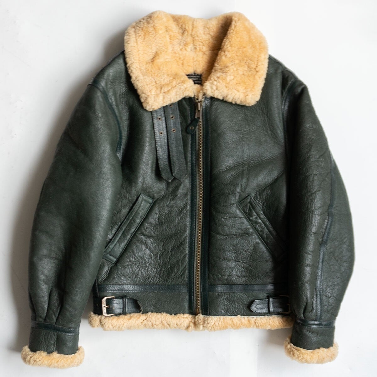 【美品/希少カラー】OCTOPUS ARMY【B-3 ムートンボンバージャケット】40 グリーン フライト レザー ジャケット 26030198
