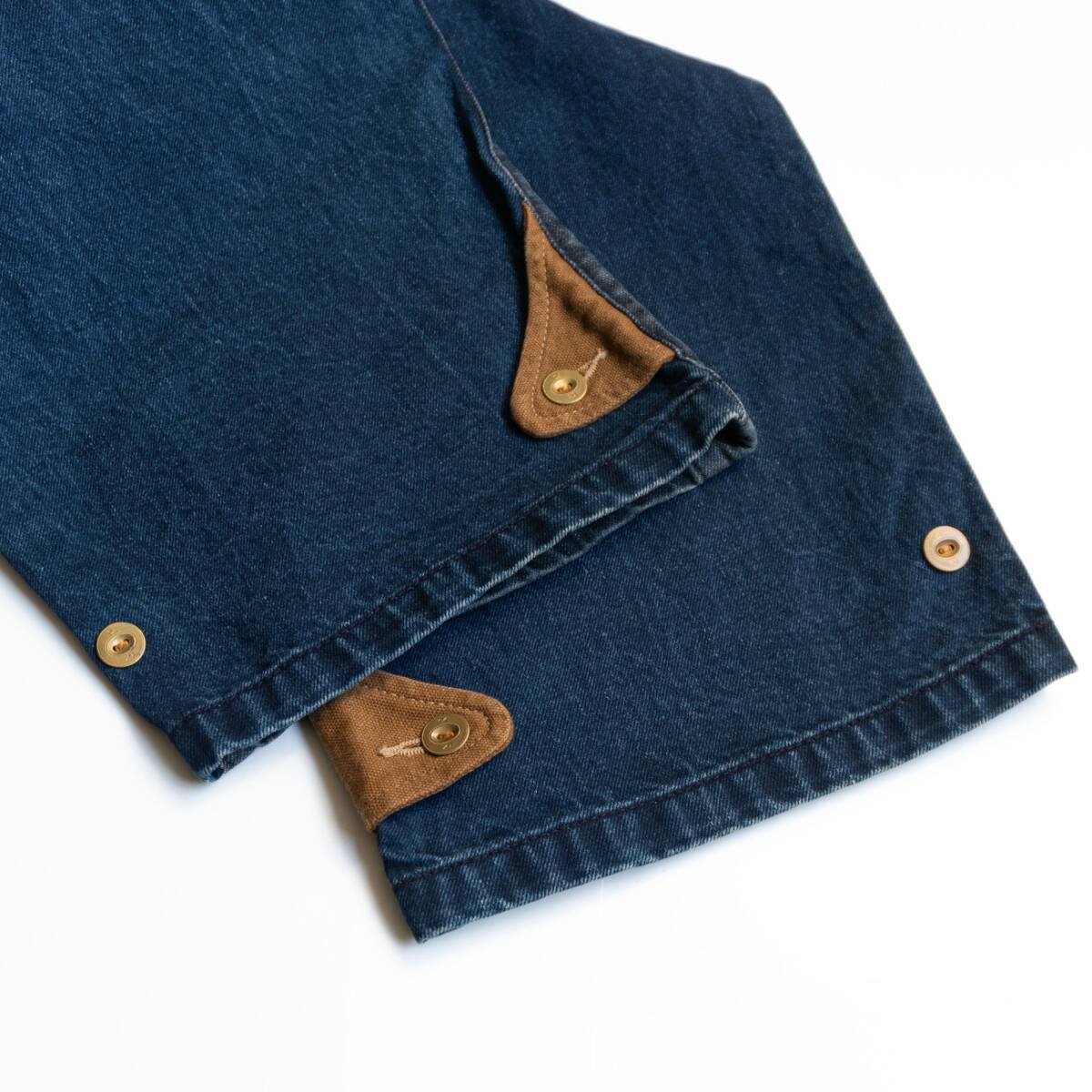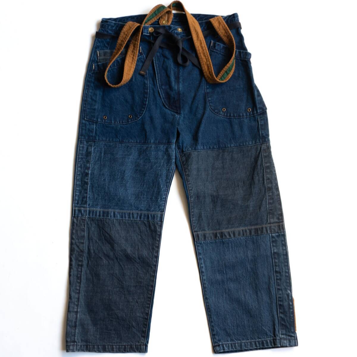 ナチュラルな風合いのデニム生地を用いた、パッチワークパンツです。サスペンダーを使用して着用いただけます。