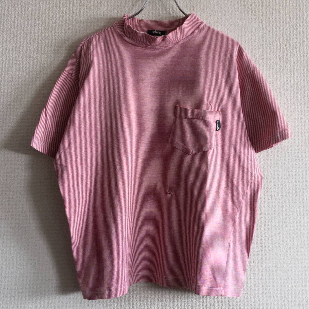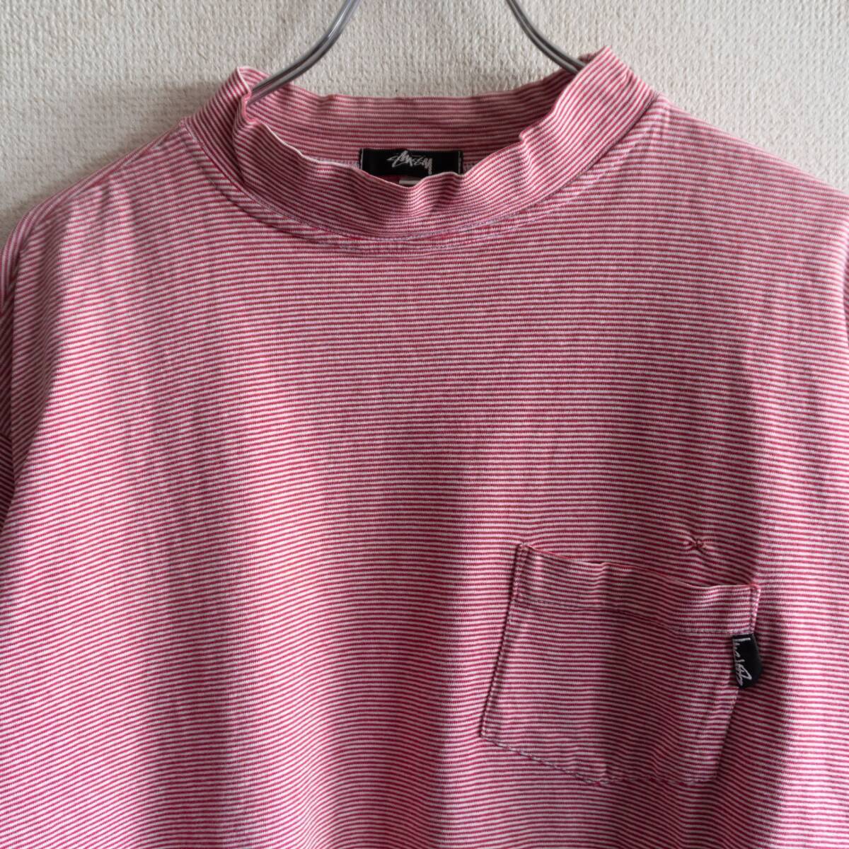 【80s/USA製】OLD STUSSY【モックネック ボーダー Tシャツ】L ステューシー オールド ビッグシルエット オーバーサイズ 古着 26030285