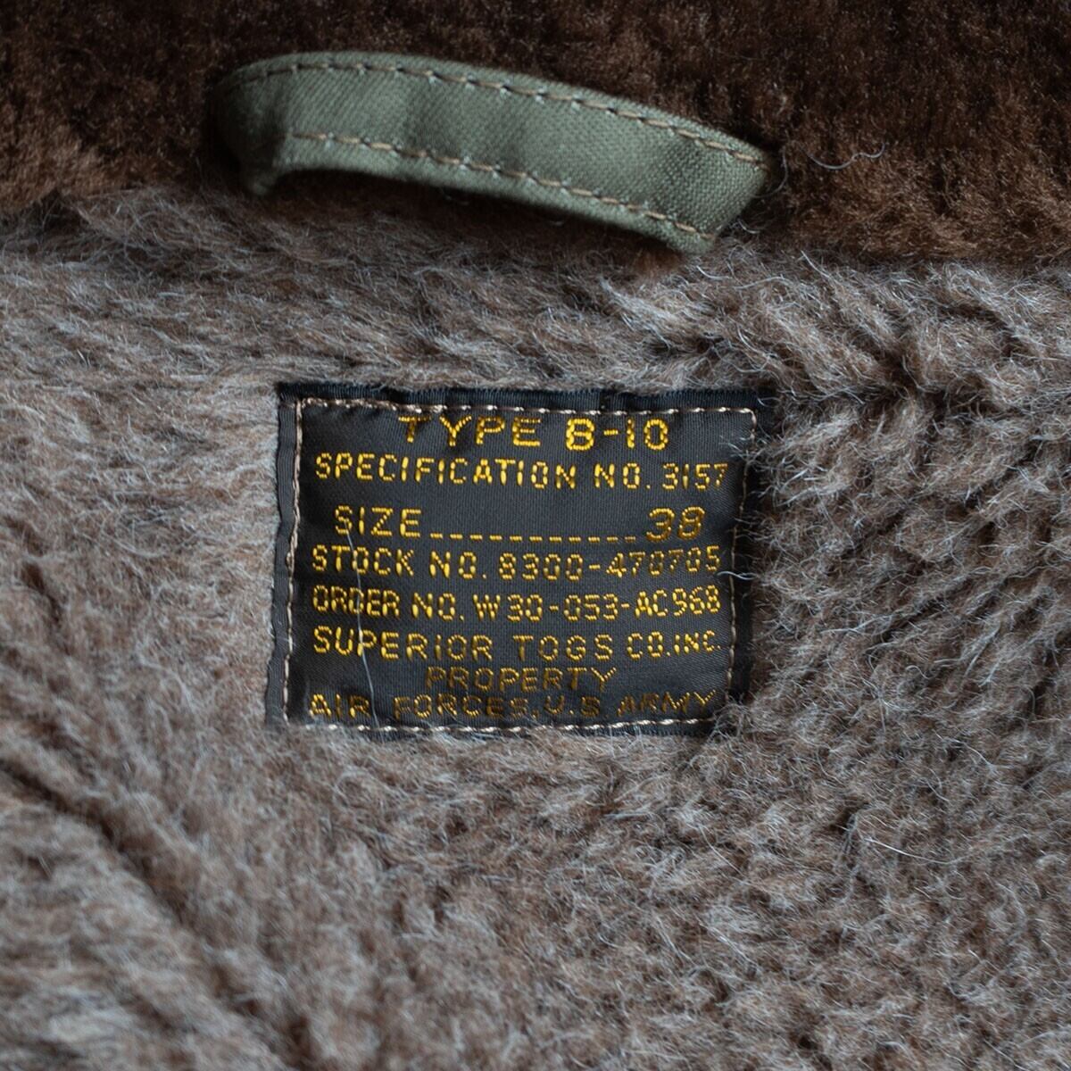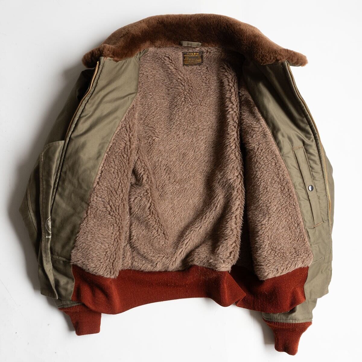 B-10は革製フライトジャケットの代替として1943年7月22日に米陸軍航空隊が正式採用した布製フライトジャケットである。ライニングにはアルパカモヘアウールパイルを使用しており保温能力が高い1着です。。お探しの方や気になる方は是非。
