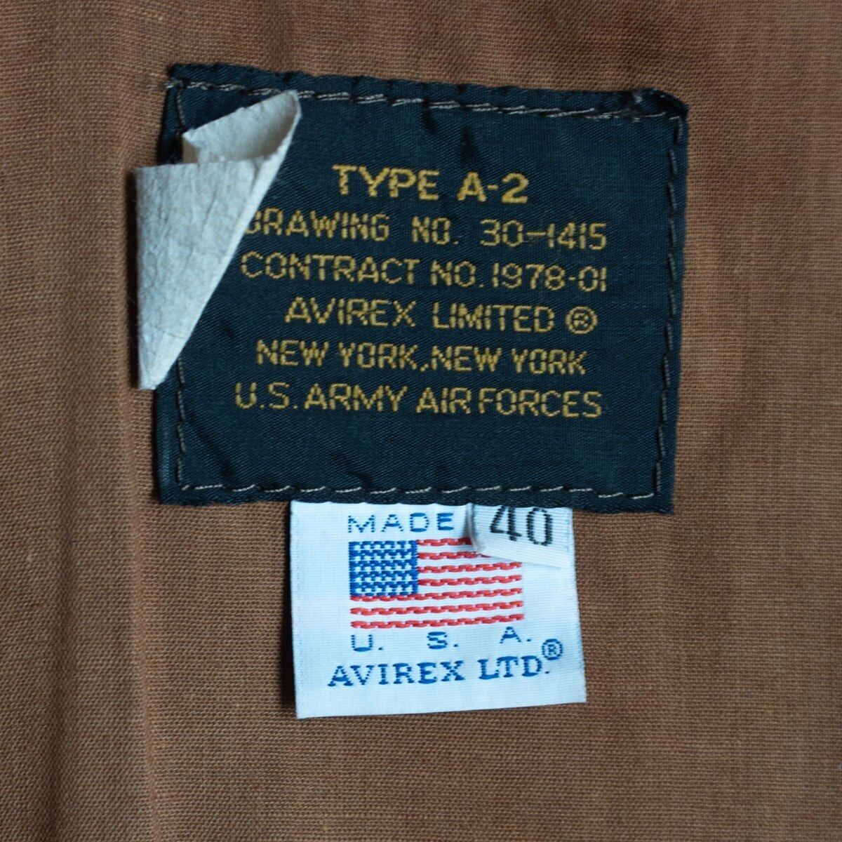 【美品】AVIREX【A-2 フライトジャケット】 40 ブラウン レザー アビレックス 26030347