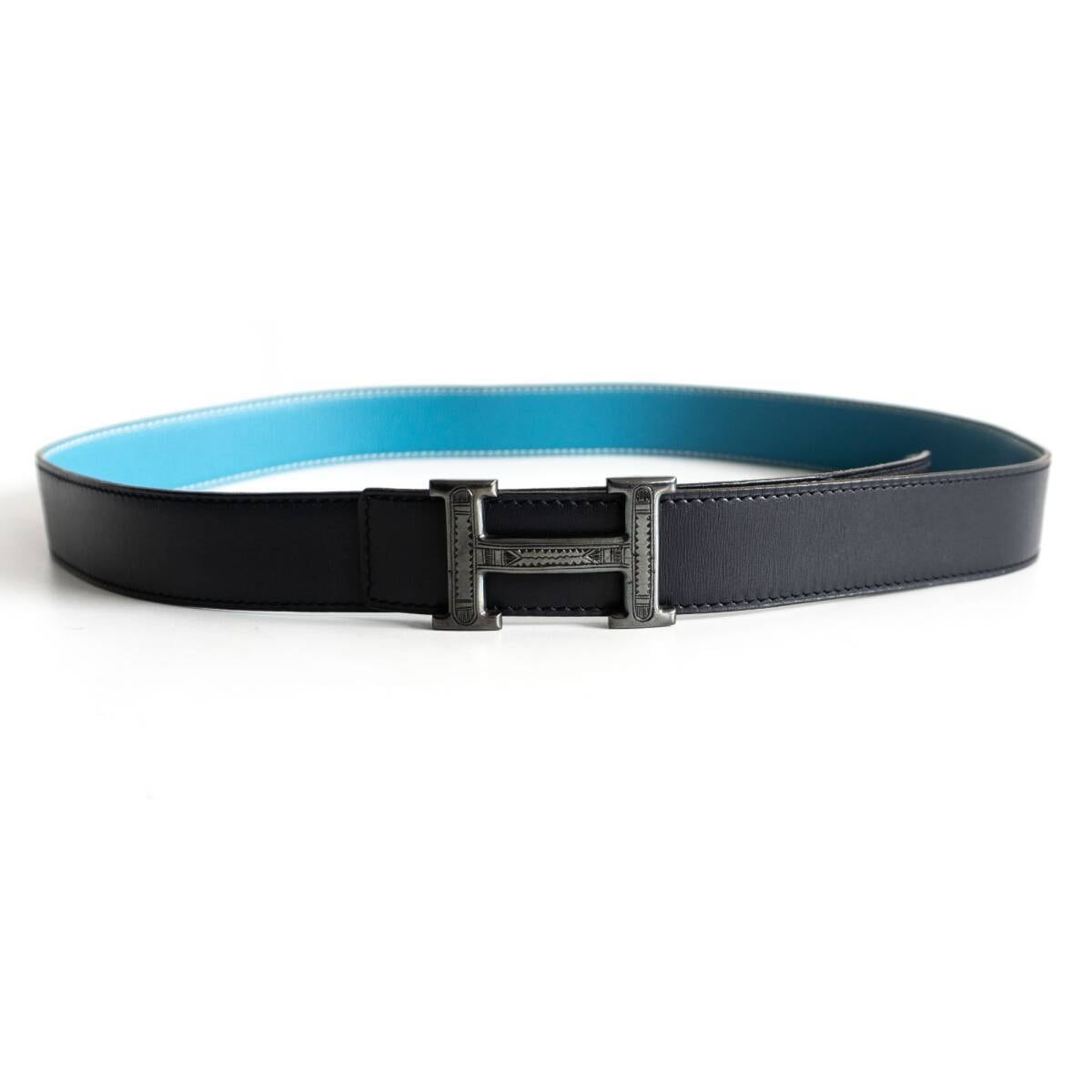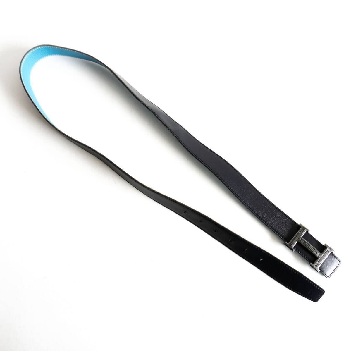 【美品】 HERMES 【コンスタンス トゥアレグ バックル リバーシブル レザー ベルト】100 ブラック×ブルー エルメス 26030392