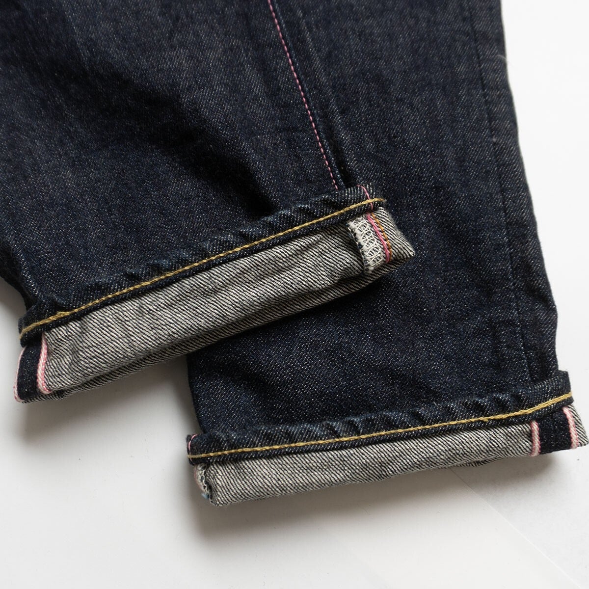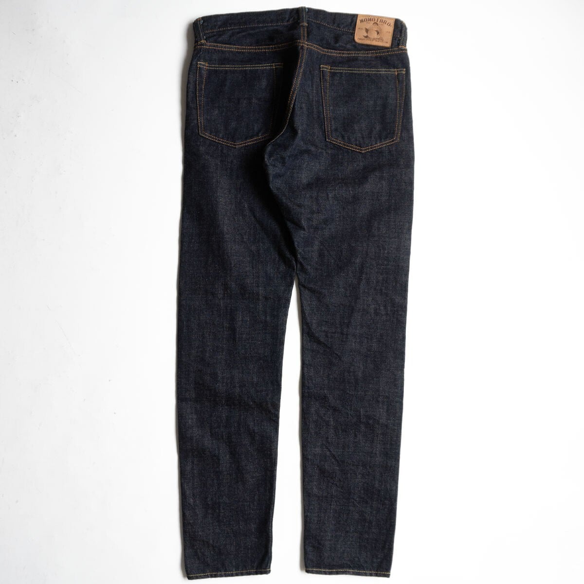 ロープ染色を繰り返し特濃インディゴブルーに染めたジンバブエコットン使用した1本。テーパードをかけた細めのシルエットです。これから経年変化をお楽しみいただけます。