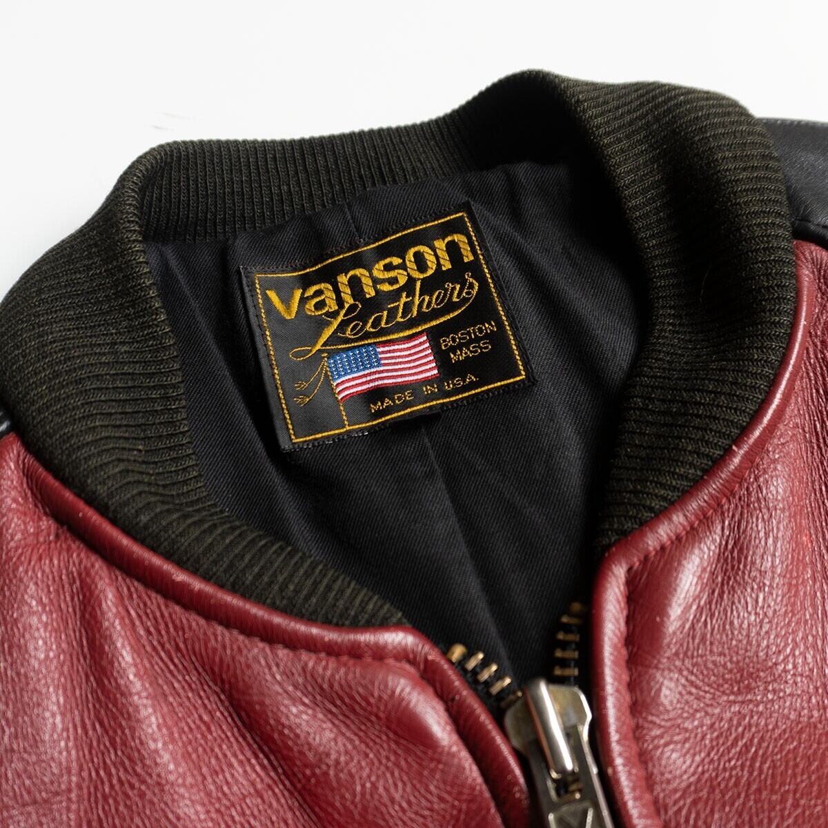 【雰囲気抜群】 VANSON 【TJV オールレザー スタジャン】40 レッド ブラック ジャケット ワッペン USA製 バンソン 26030389
