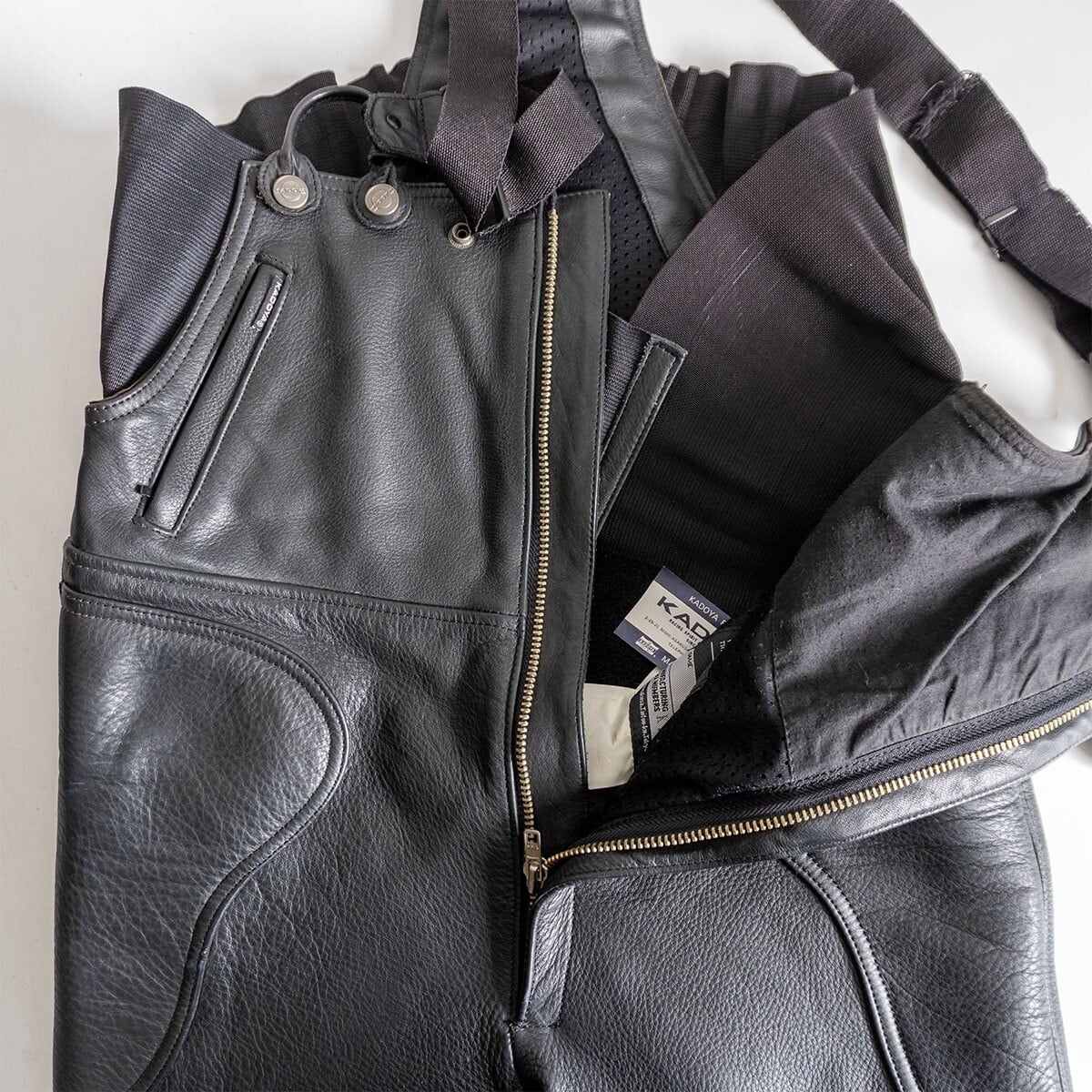 【美品】KADOYA【CLASH KING ディフュージョンスーツ オーバーオール】LL レザー ブラック カドヤ 26030459