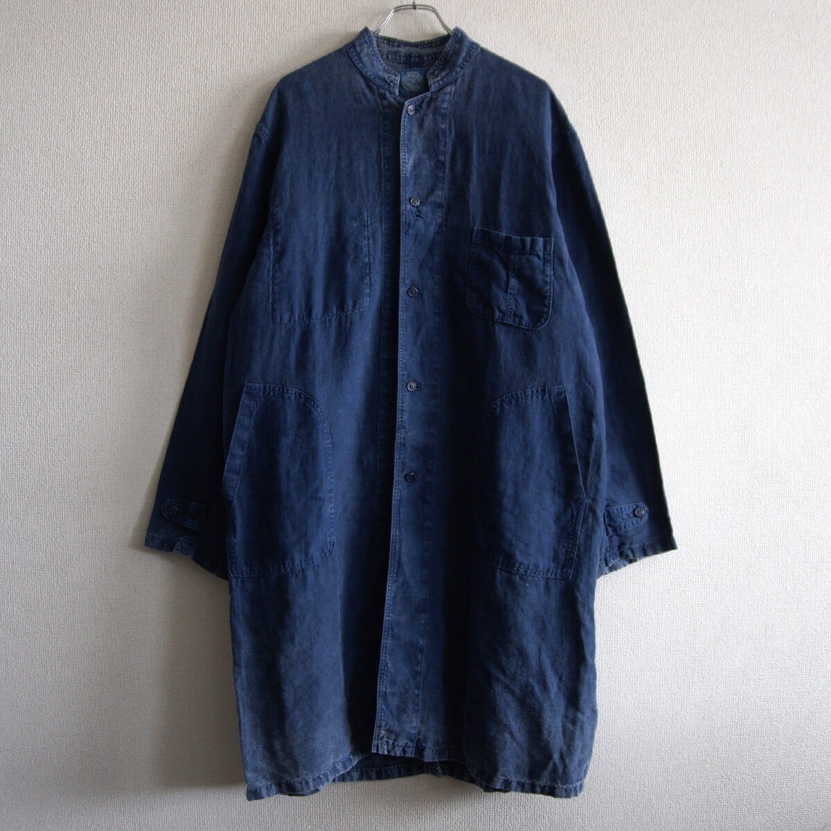フェード加工がされたインディゴリネンコートです。ゆったりとしたシルエットで着用いただけます。良い物をお探しの方は是非。