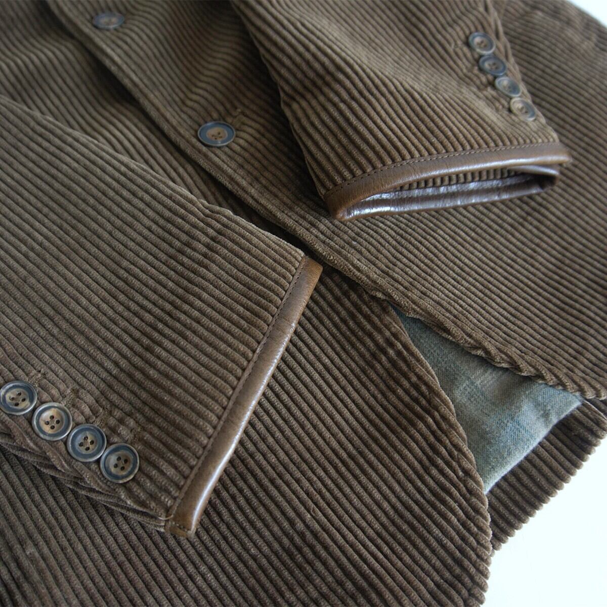 コーデュロイ素材のクラシカルな雰囲気溢れる一着です。袖口はレザートリムが施されています。