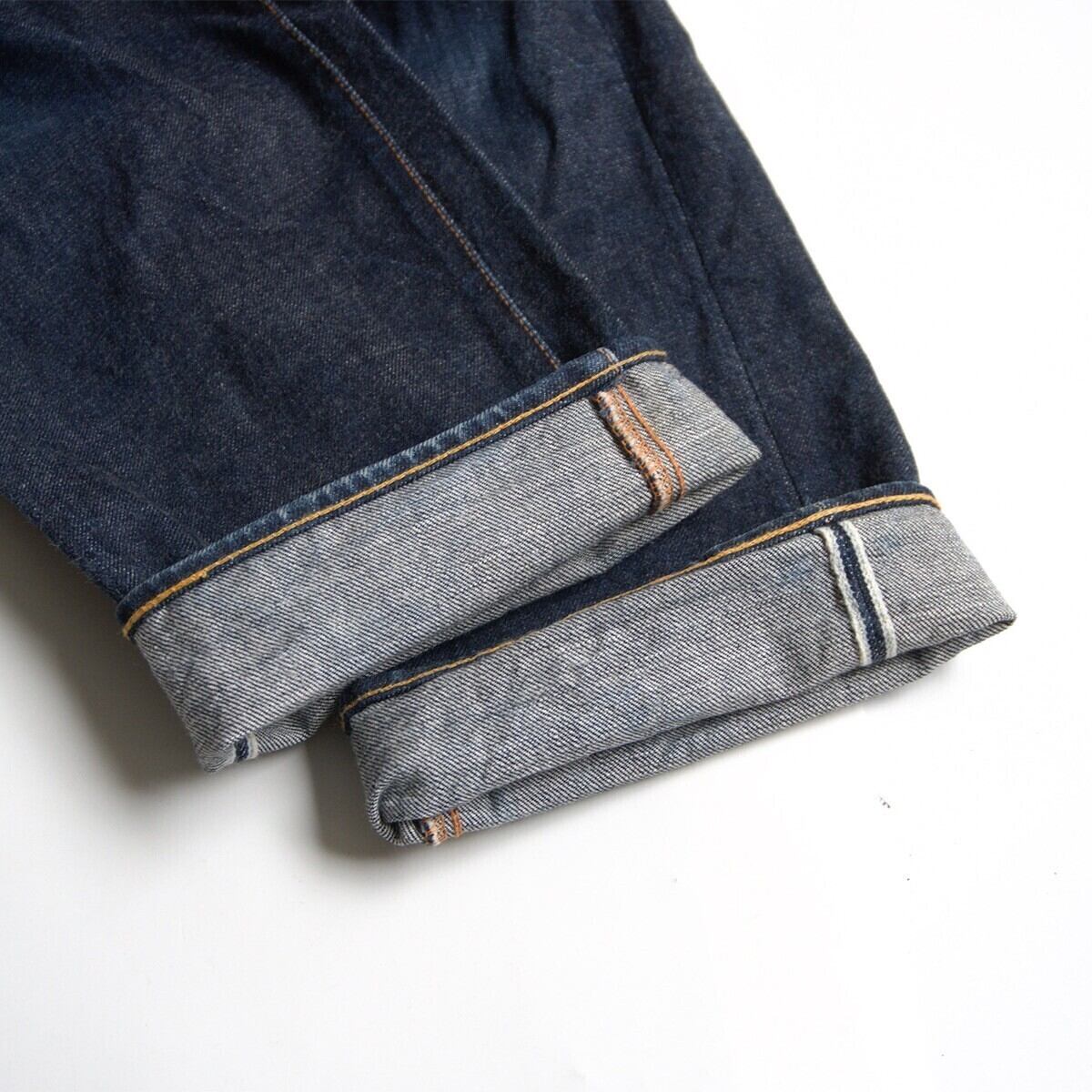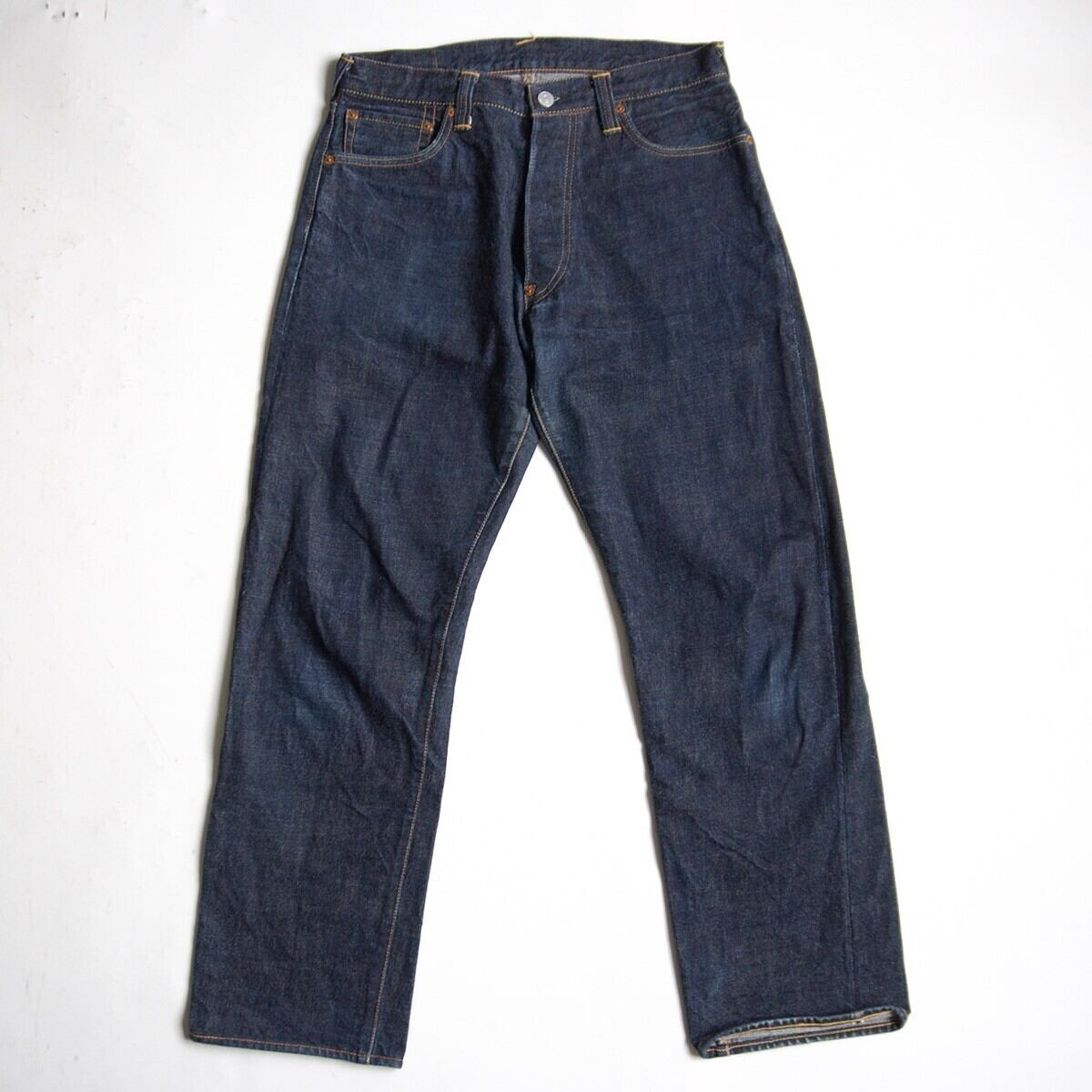 中古品でございます。バックポケットの隠しリベットがある部分に傷がございます。その他多少の着用感や擦れがございます。神経質な方はお控え下さい。
