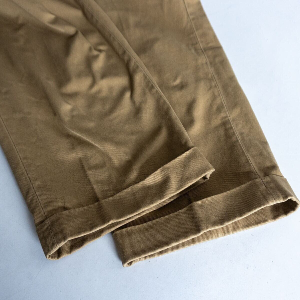 肉厚なチノツイル生地を使用した2タックチノパンツです。お探しの方や気になる方は是非。