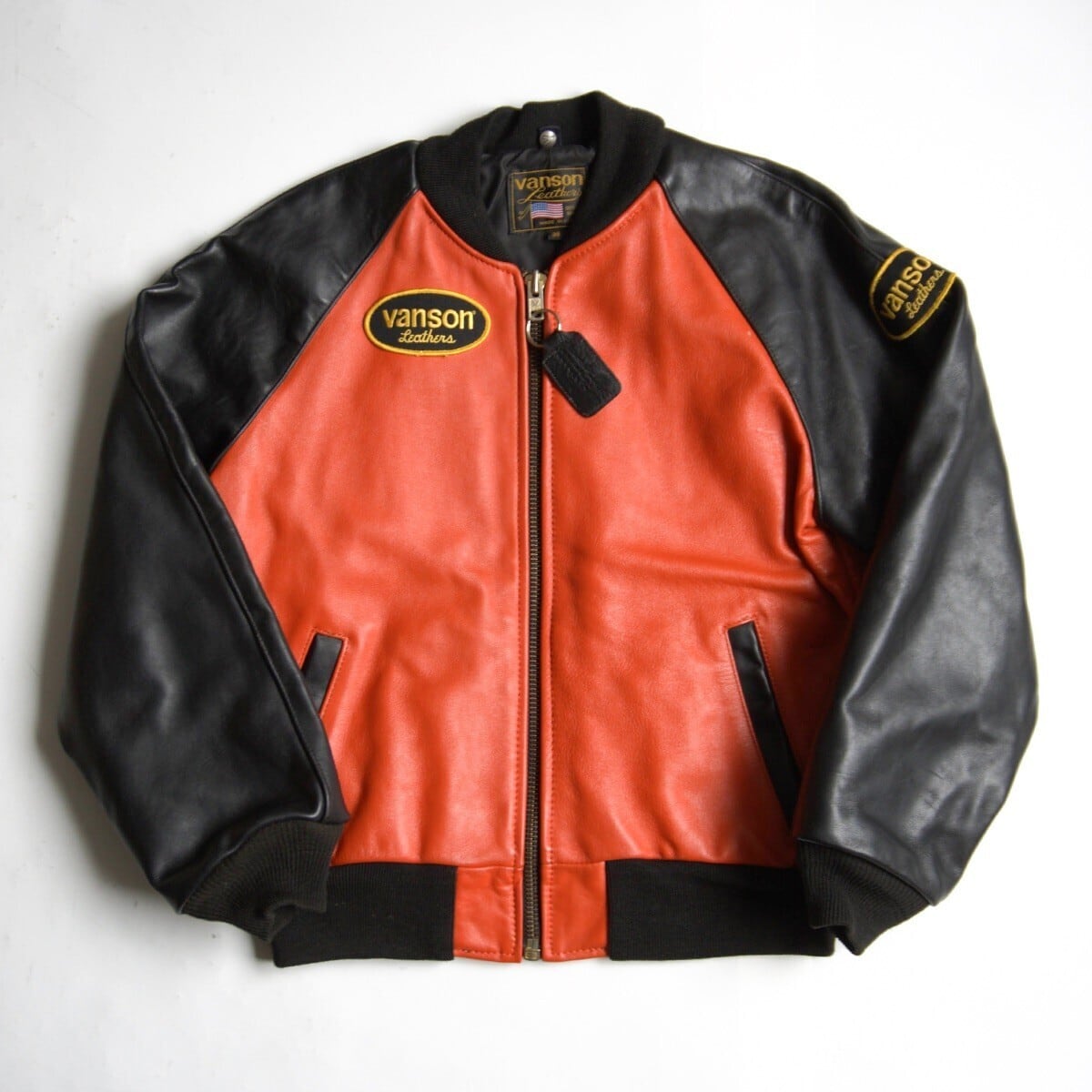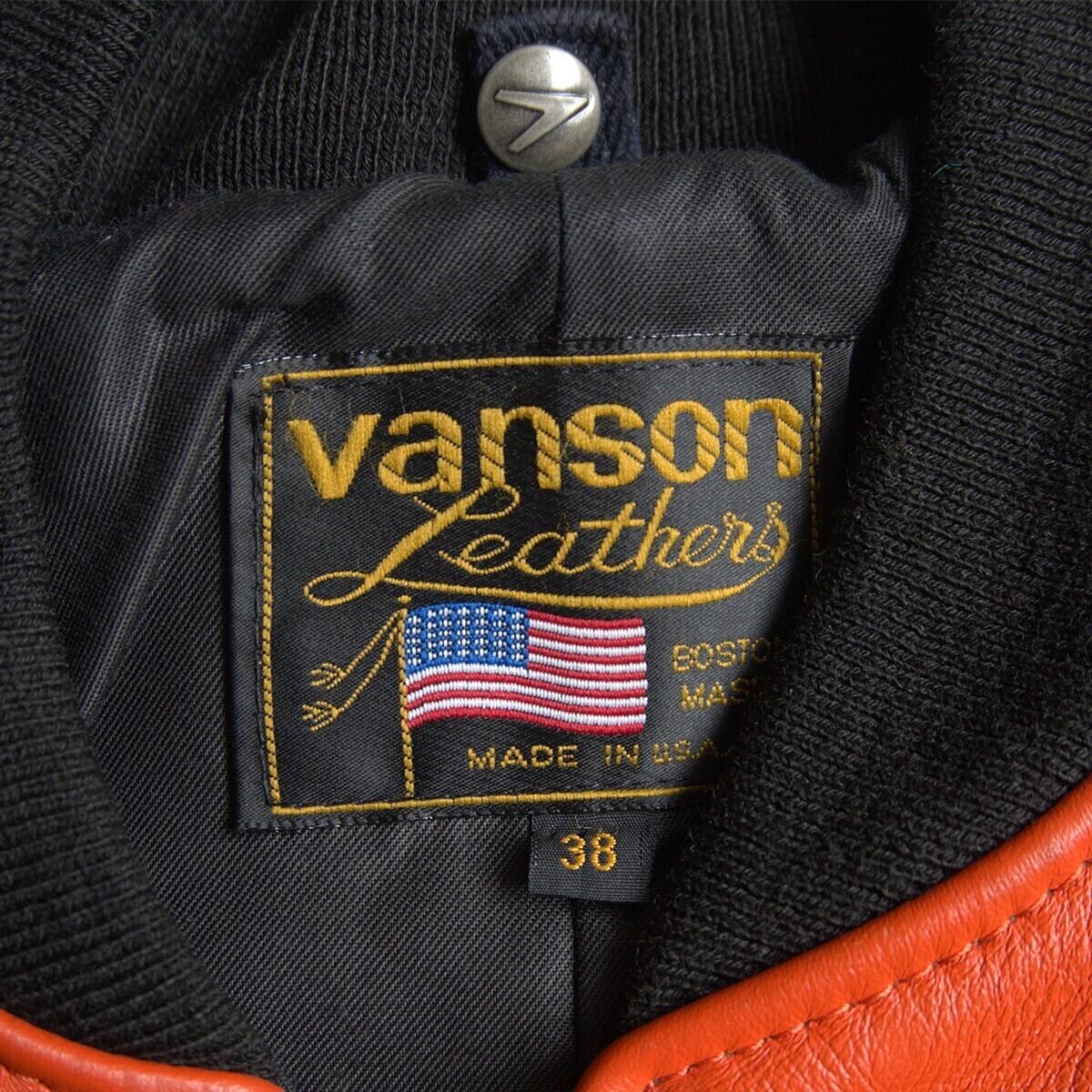 【美品】 VANSON 【TJV オールレザー スタジャン】38 ブラック オレンジ ジャケット ワッペン USA製 バンソン 26030649