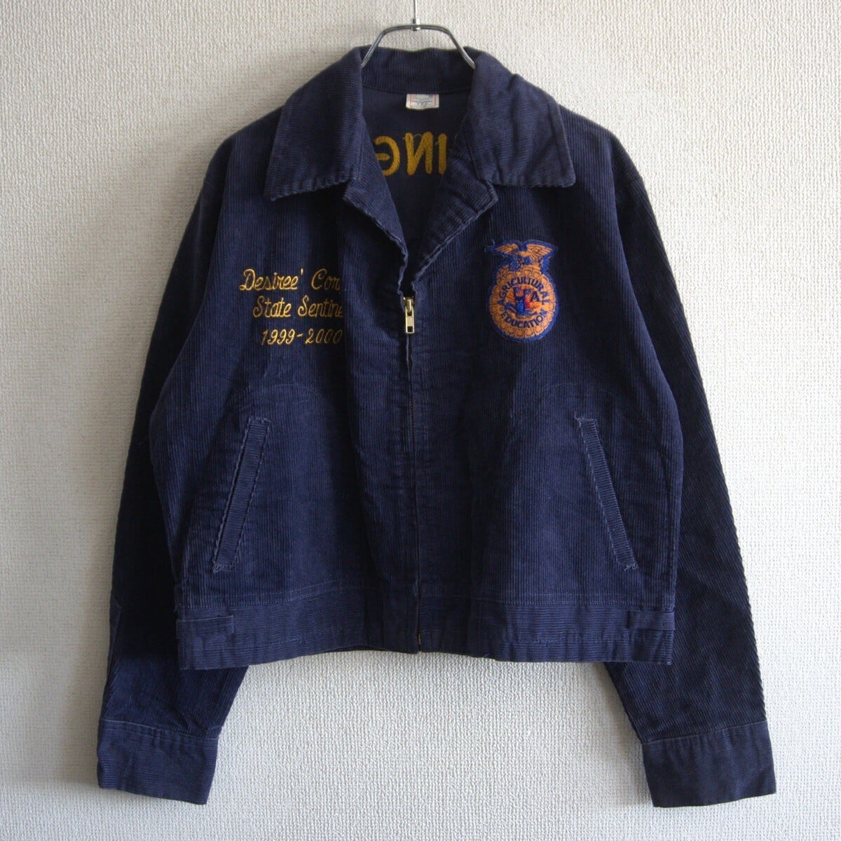 FFAとはFuture Farmars of Americaの頭文字をとった略称でアメリカ合衆国学校農業クラブ連盟のことを指します、『みんなでアメリカの農業の未来を考えていきましょう』という意味になります。その団体のユニフォームとして使用されていたのがこのFFAジャケットです。カラーは紺をベースに前後にはFFAのワッペン後ろにはワッペンの上に各州のチェーンステッチが入っています。お探しの方や気になる方は是非。