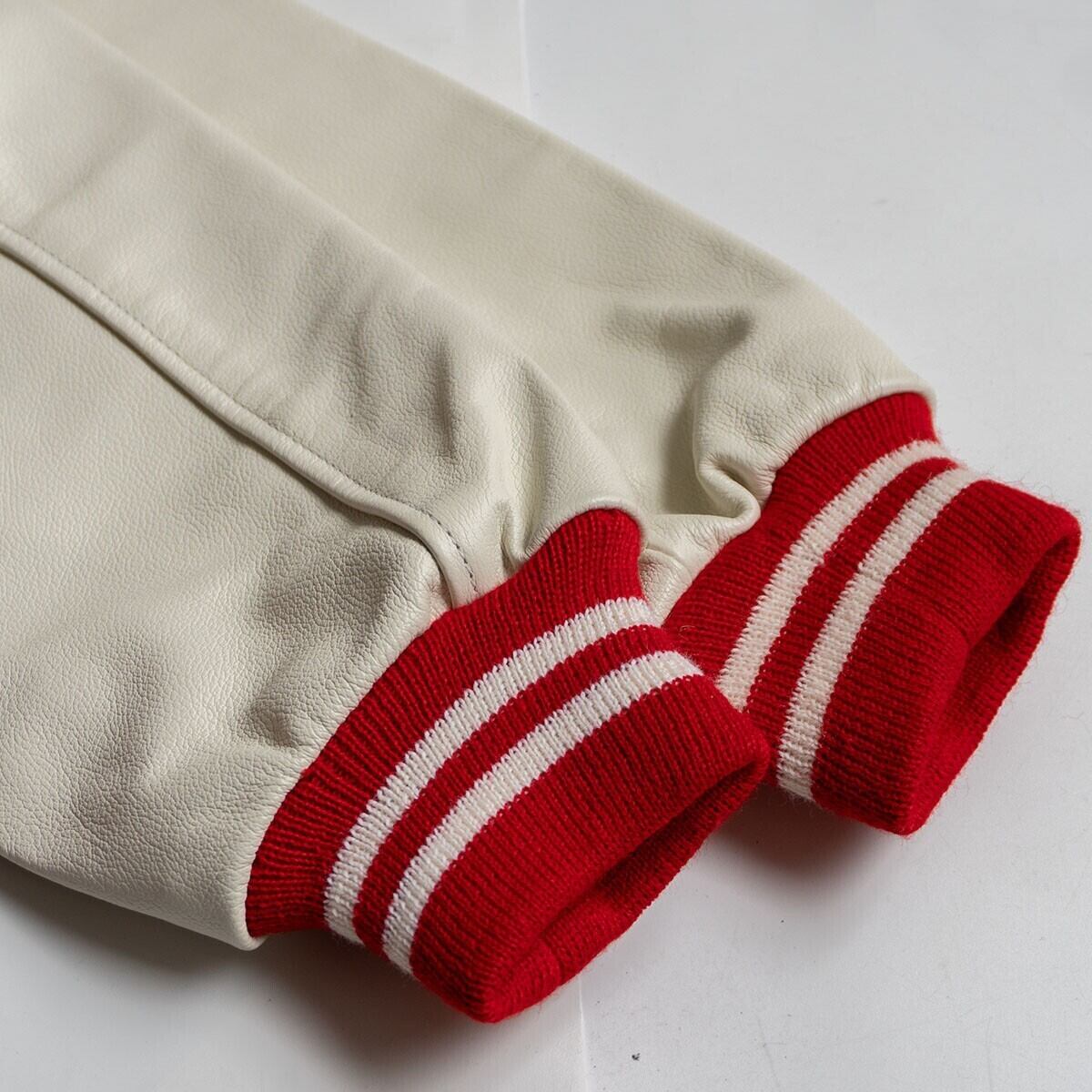 上質なメルトンウール×レザーのスタジャン。お色はレッド×ホワイトです。お探しの方や気になる方は是非。