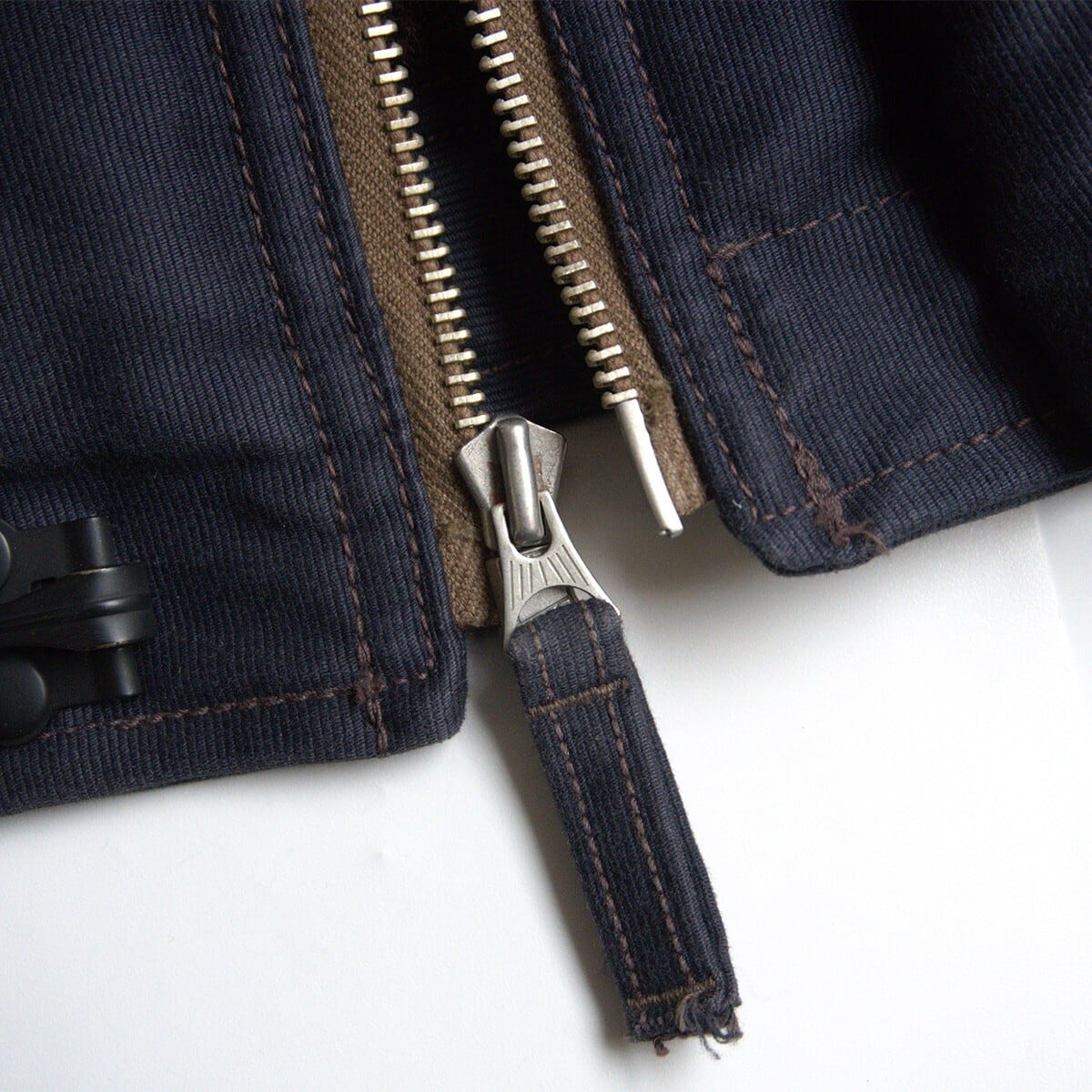 甲板作業員のアウター”N-1デッキジャケット”をモディファイしたフリーホイーラーズ・オリジナル・ホック&ジッパータイプの”デッキジャケット”になります。
