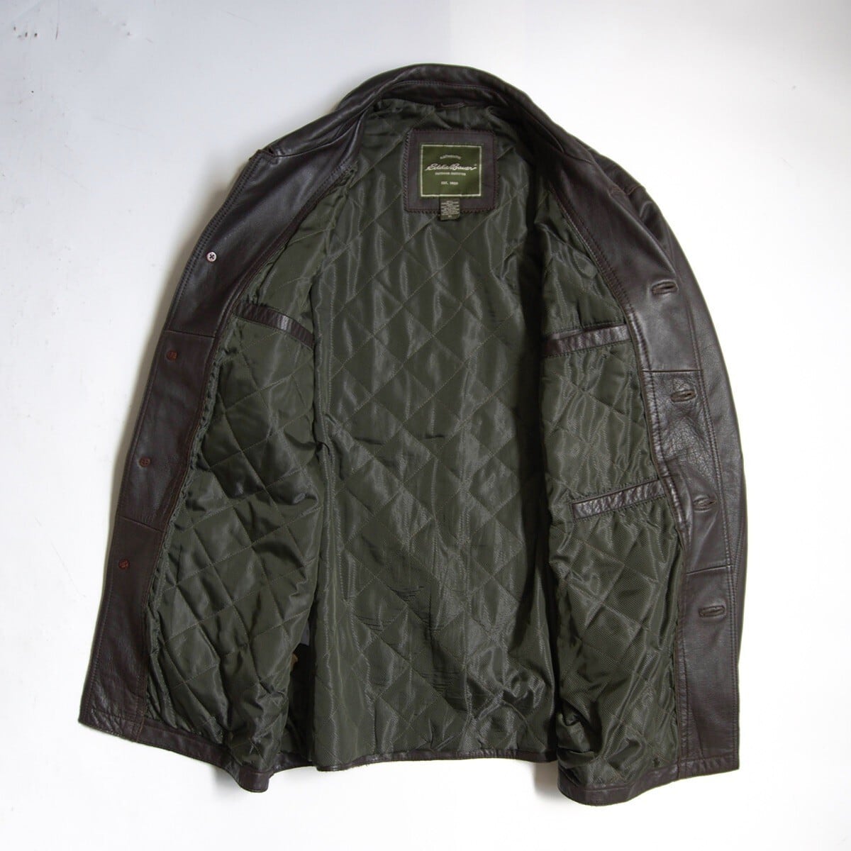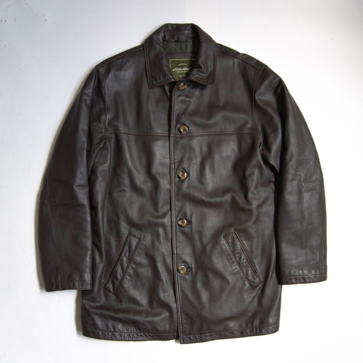【美品】EDDIE BAUER【レザー カーコート】XL ダークブラウン エディーバウアー 26030875