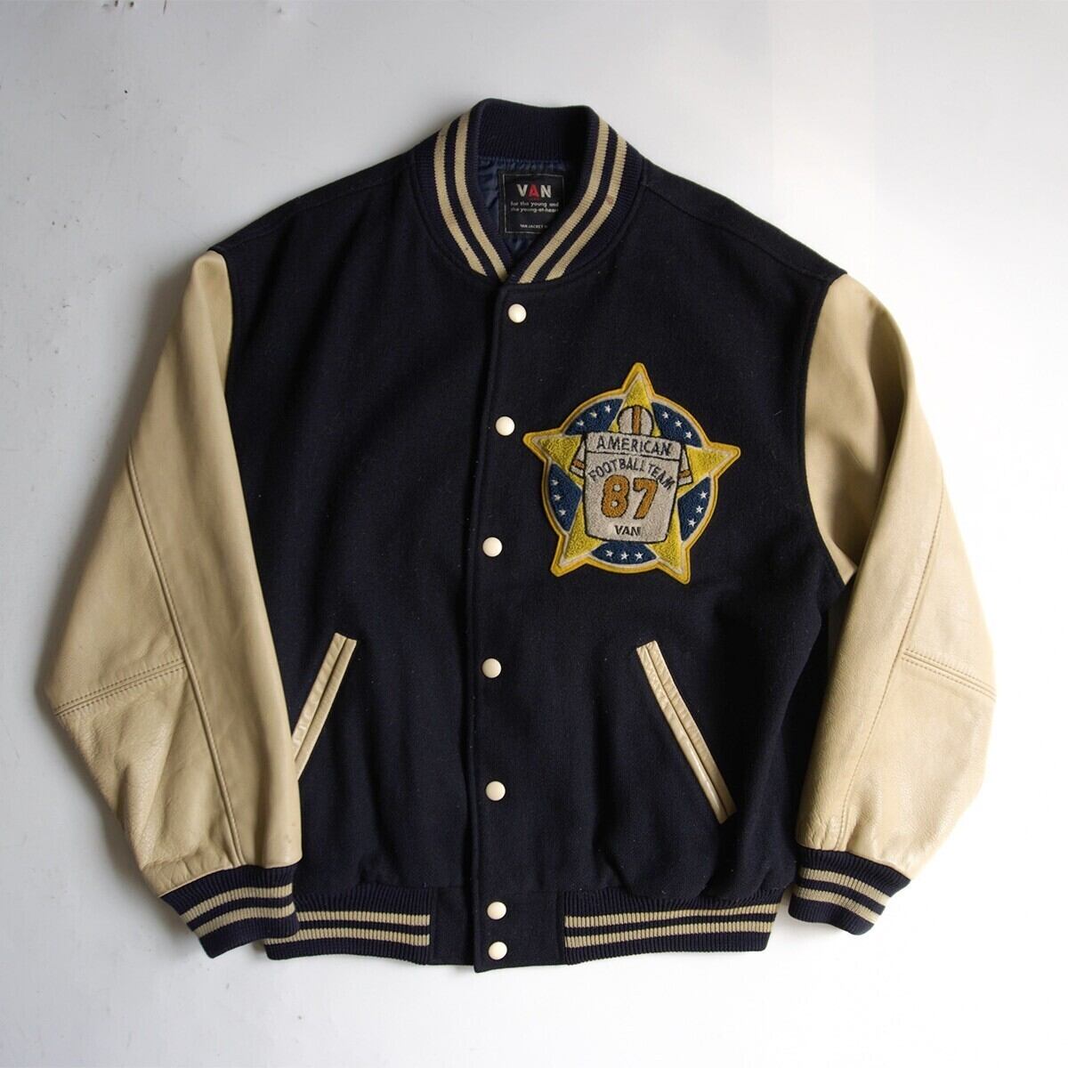 【雰囲気抜群】 VAN JAC 【袖レザー スタジャン】LL ヴァン ワッペン スタジアムジャンパー レザー 26030865