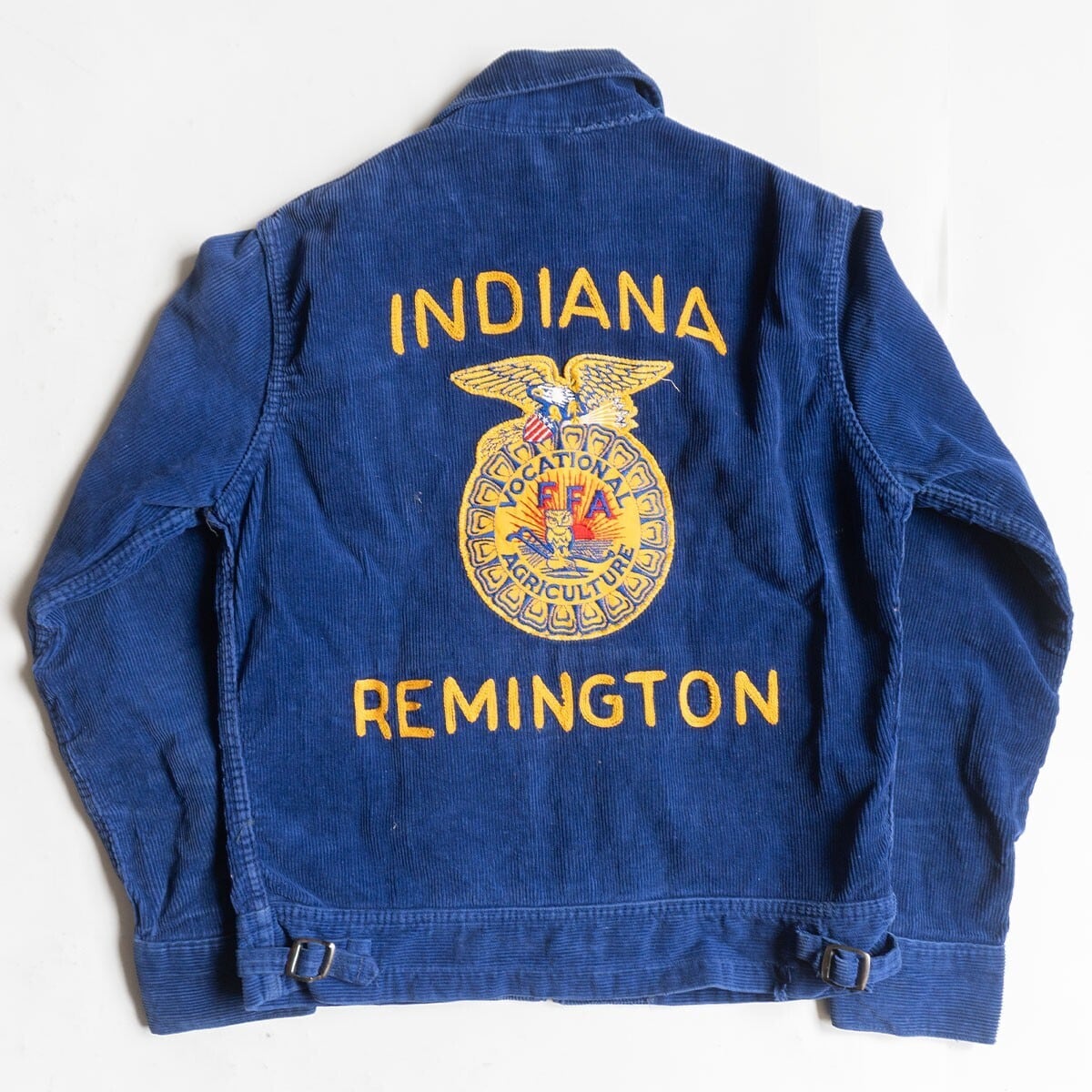 FFAとはFuture Farmars of Americaの頭文字をとった略称でアメリカ合衆国学校農業クラブ連盟のことを指します、『みんなでアメリカの農業の未来を考えていきましょう』という意味になります。その団体のユニフォームとして使用されていたのがこのFFAジャケットです。カラーは紺をベースに前後にはFFAのワッペン後ろにはワッペンの上に各州のチェーンステッチが入っています。お探しの方や気になる方は是非。