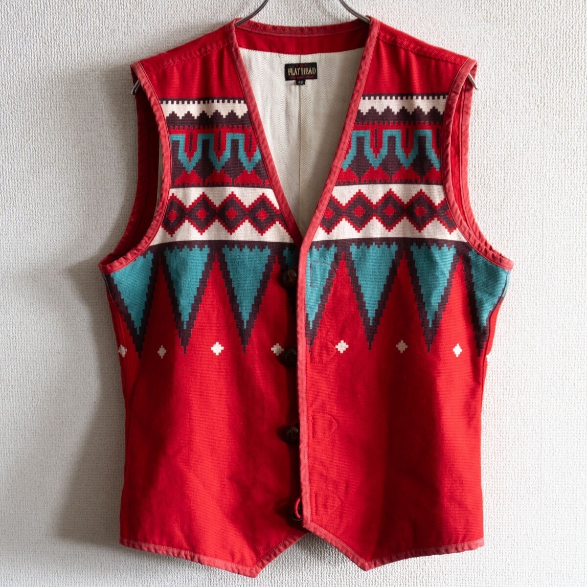【ビッグサイズ】THE FLAT HEAD【 ネイティブ柄 ベスト】42 フラットヘッド 26030984