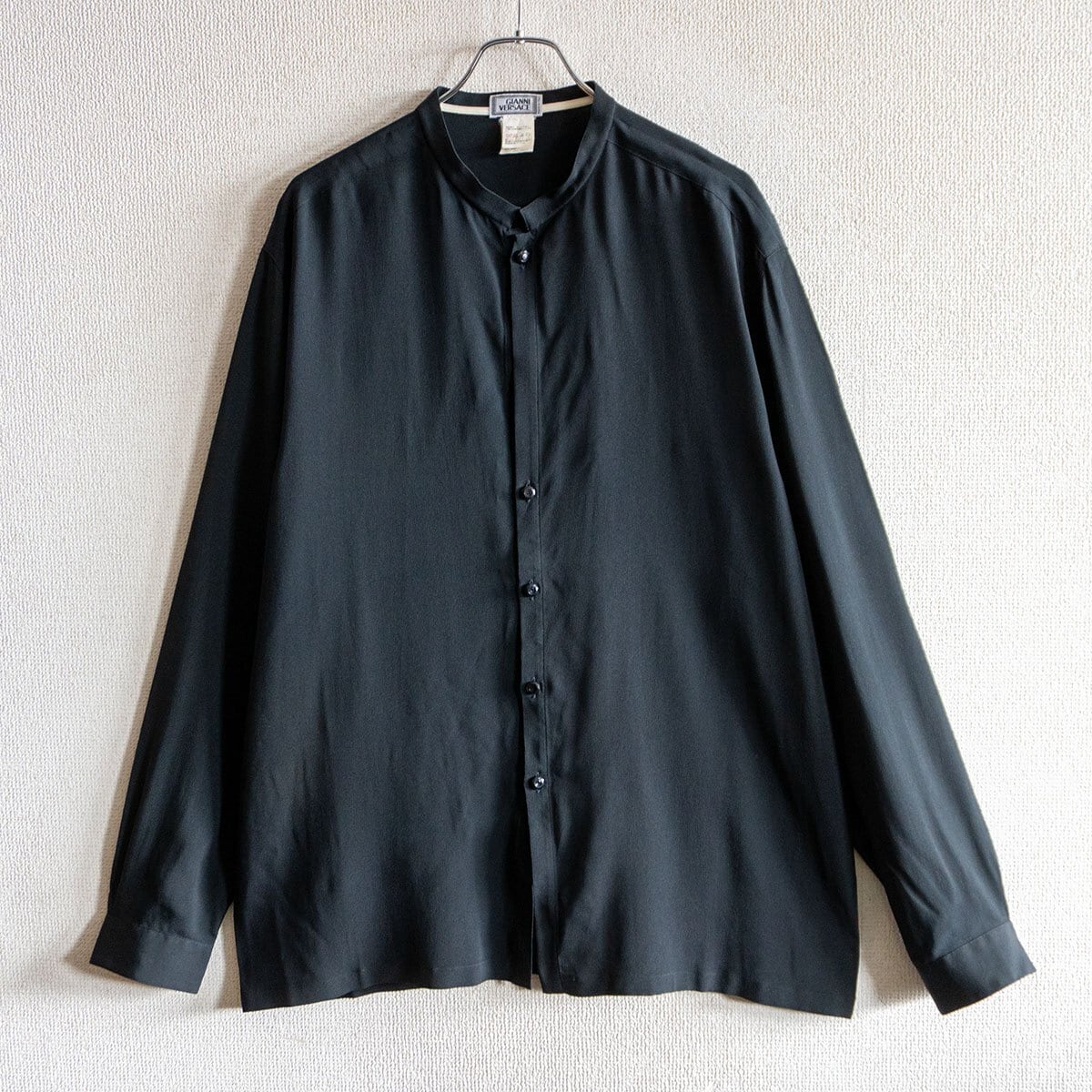 【雰囲気抜群】GIANNI VERSACE【ノーカラー シャツ】52 ブラック イタリア製 ヴェルサーチ 26030972