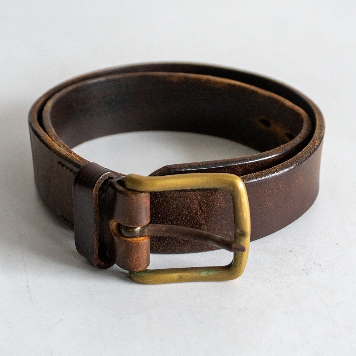 肉厚なレザーを使用したベルトです。お色はハバナ。