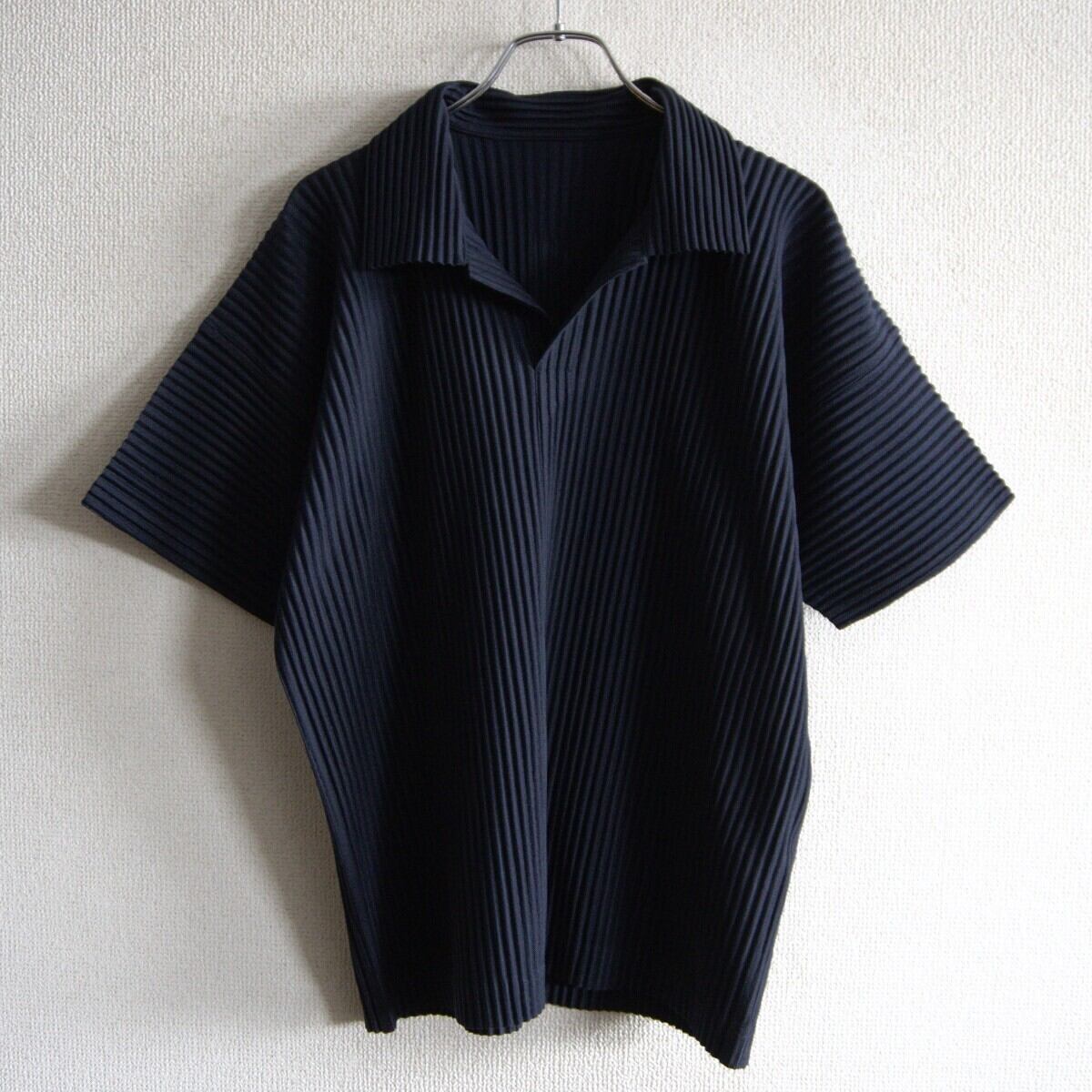 【美品】 HOMME PLISSE ISSEY MIYAKE【プリーツ シャツ】2 ブラック オムプリッセ イッセイミヤケ s2603146
