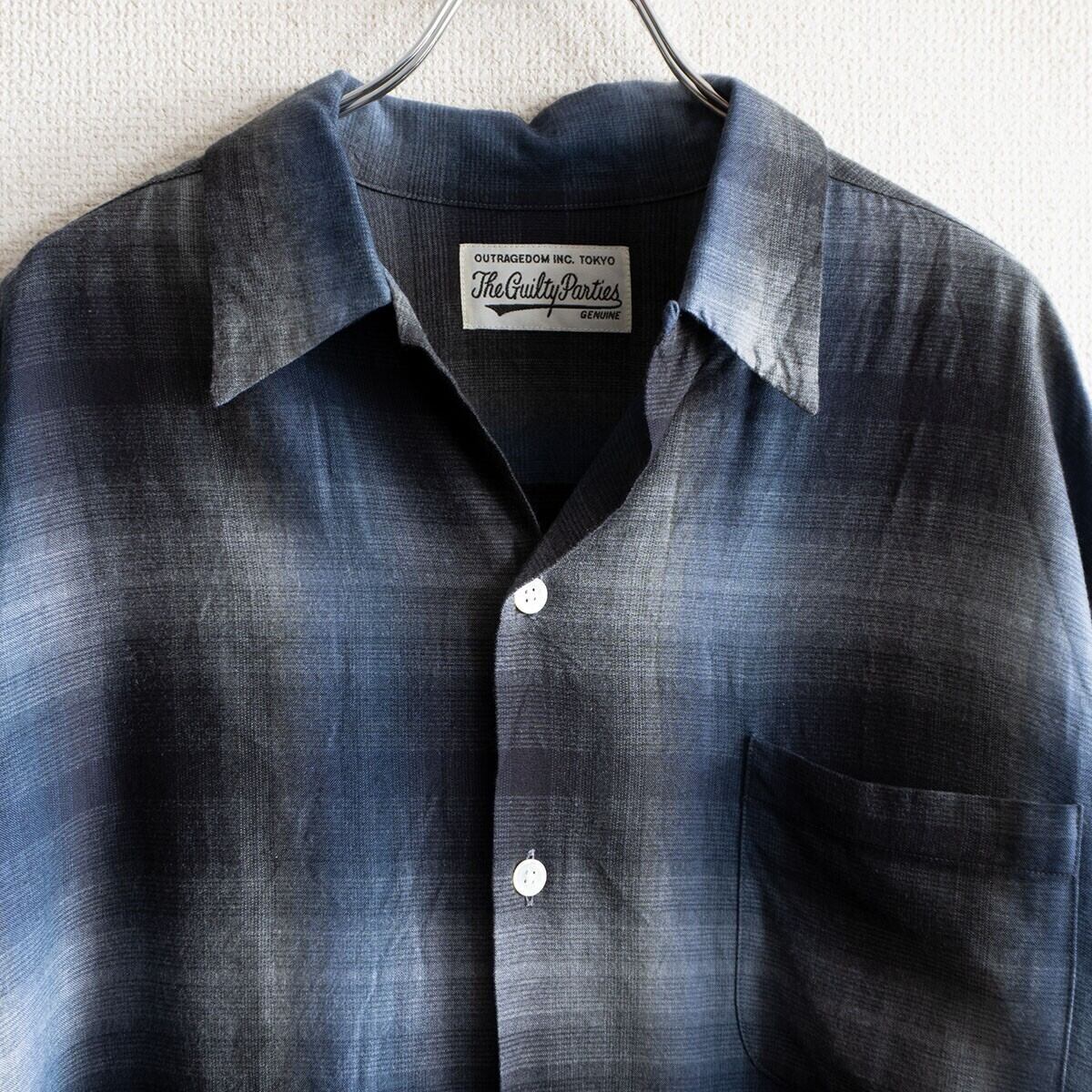 【23AW】WACKO MARIA【OMBRE CHECK OPEN COLLAR SHIRT L/S オープンカラー シャツ】 L ワコマリア 26031065