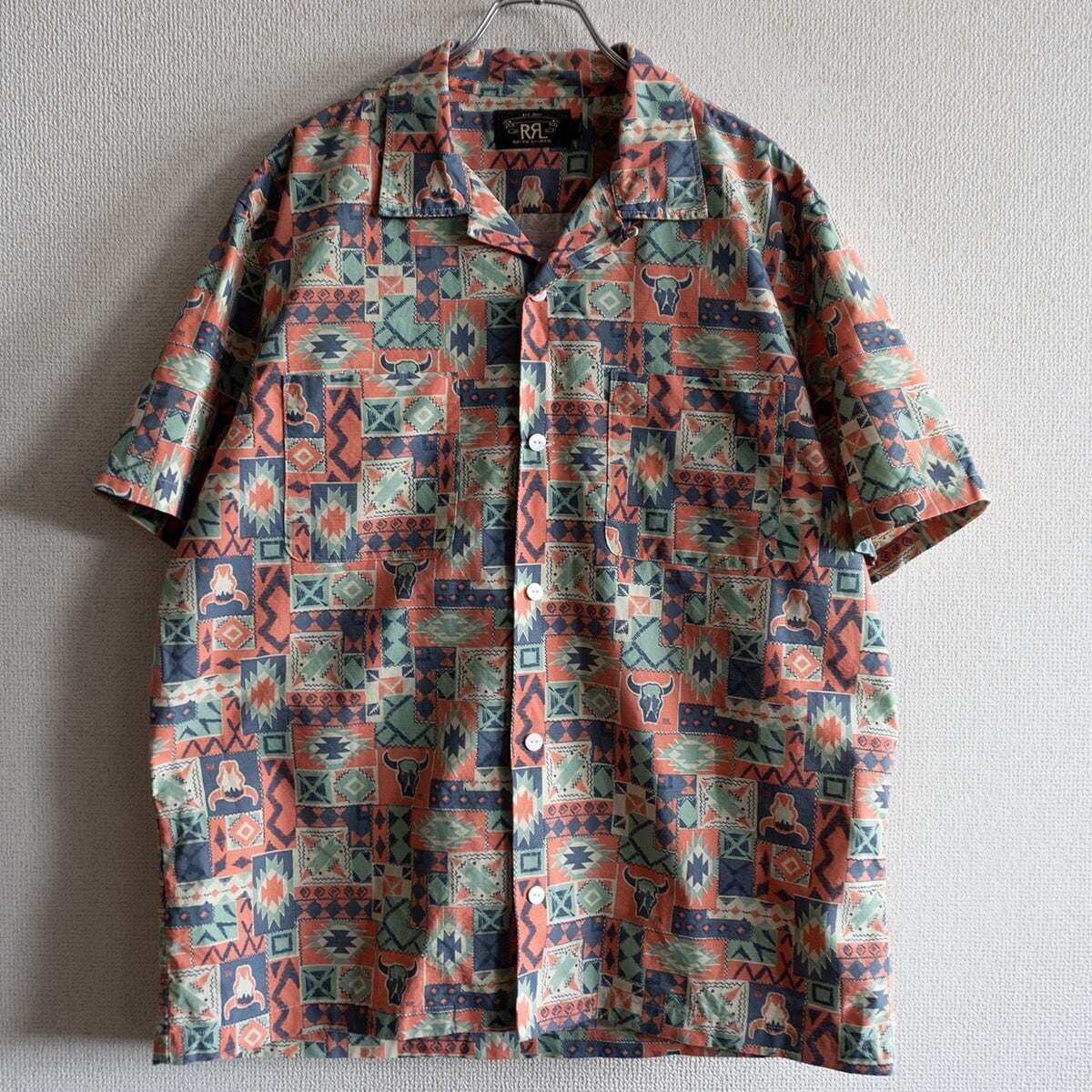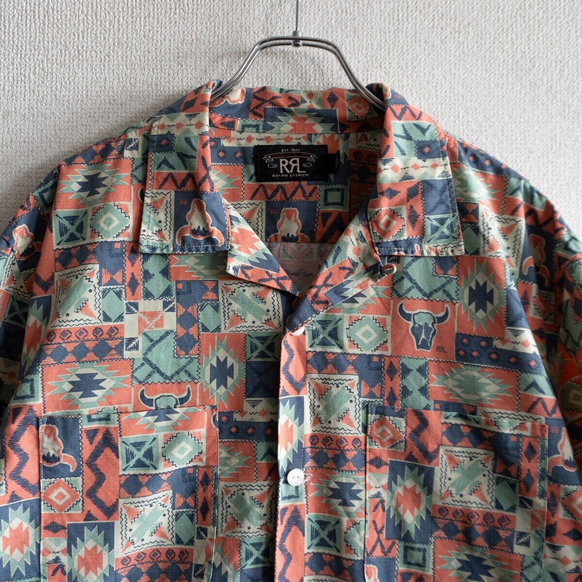 【極美品】RRL【PRINT WOVEN CAMP SHIRTS】L ネイティブ オープンカラー シャツ ダブルアールエル 26040158