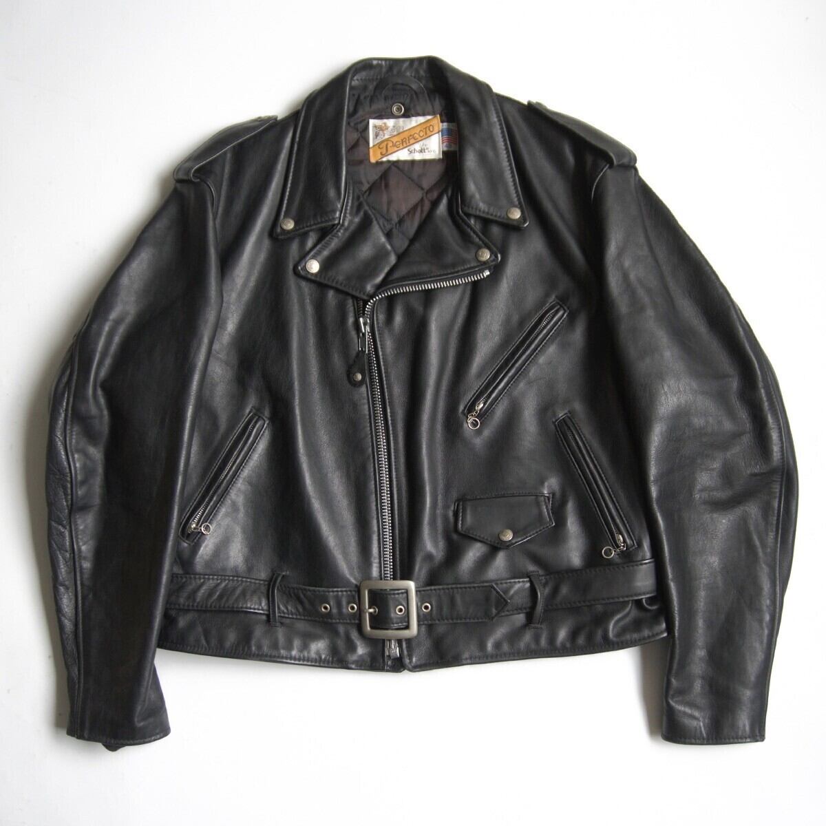 【美品/ビッグサイズ】SCHOTT【618/ダブルライダース ジャケット】48 レザー アメリカ製 ブラック ショット 26040045