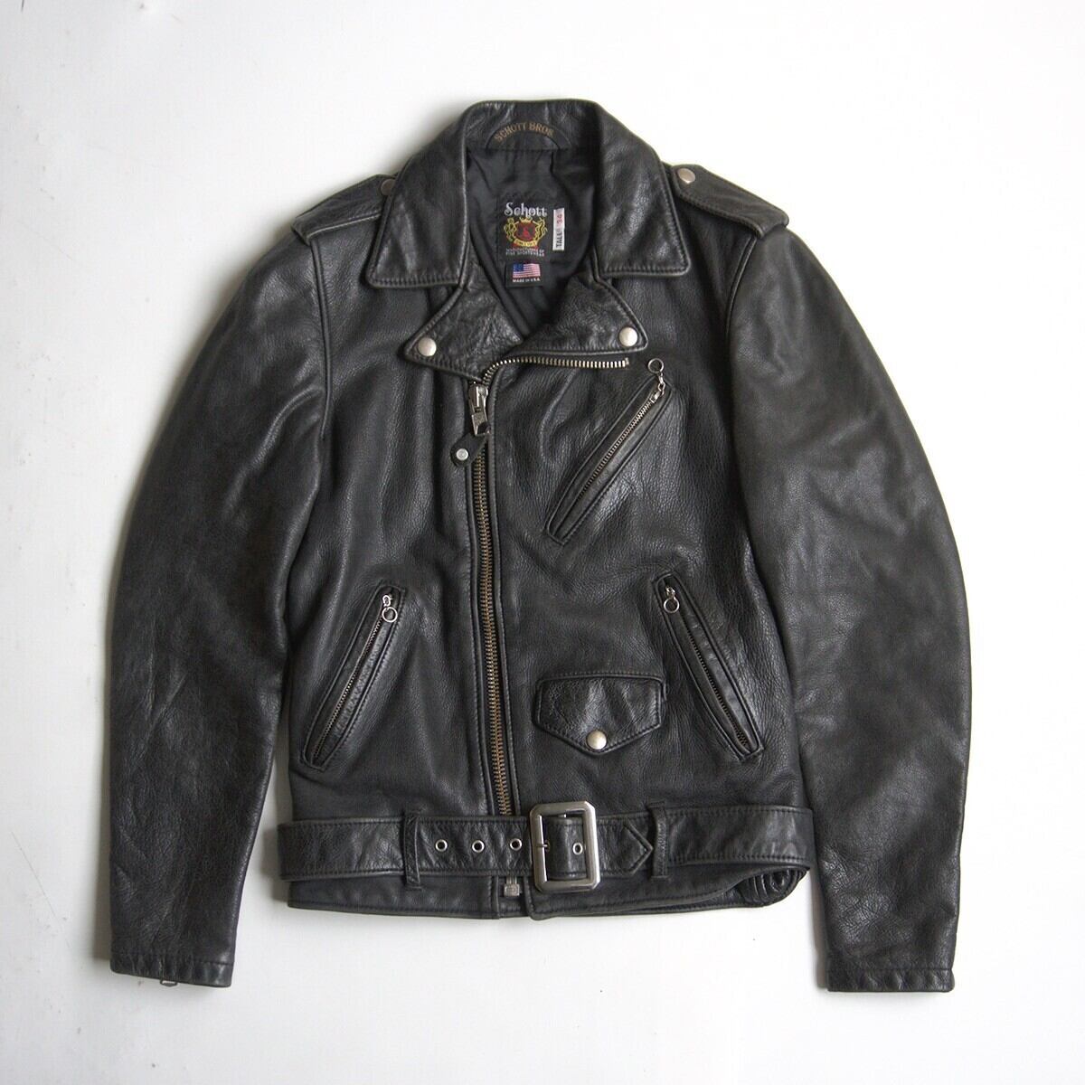 【雰囲気抜群】SCHOTT【613WA/GARMENTWASH/ダブルライダースジャケット】34TALL USA製 ブラック ショット 26031085