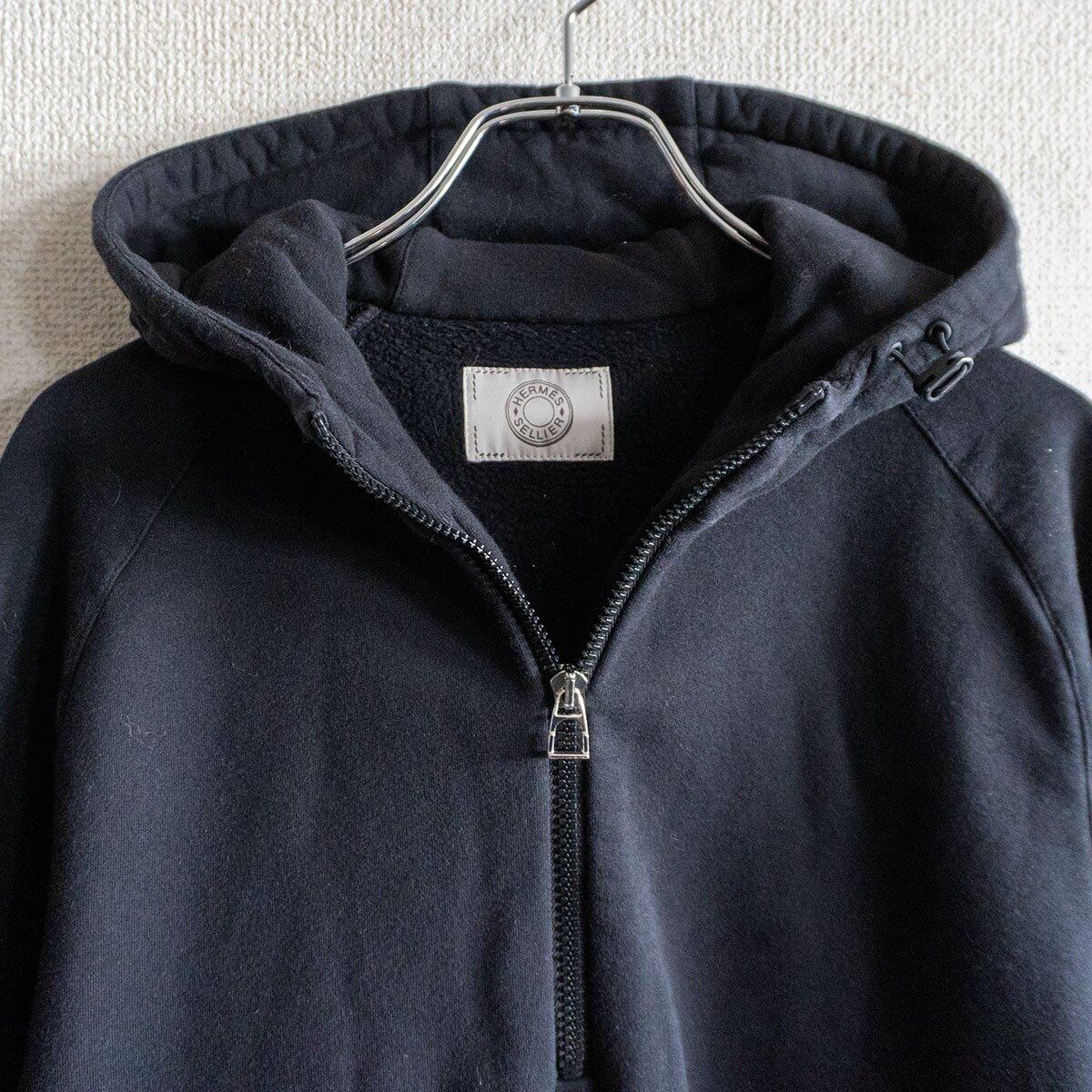 【最高級】 HERMES 【セリエスナップボタン ハーフジップ パーカー】L エルメス ブラック フランス製 26040074