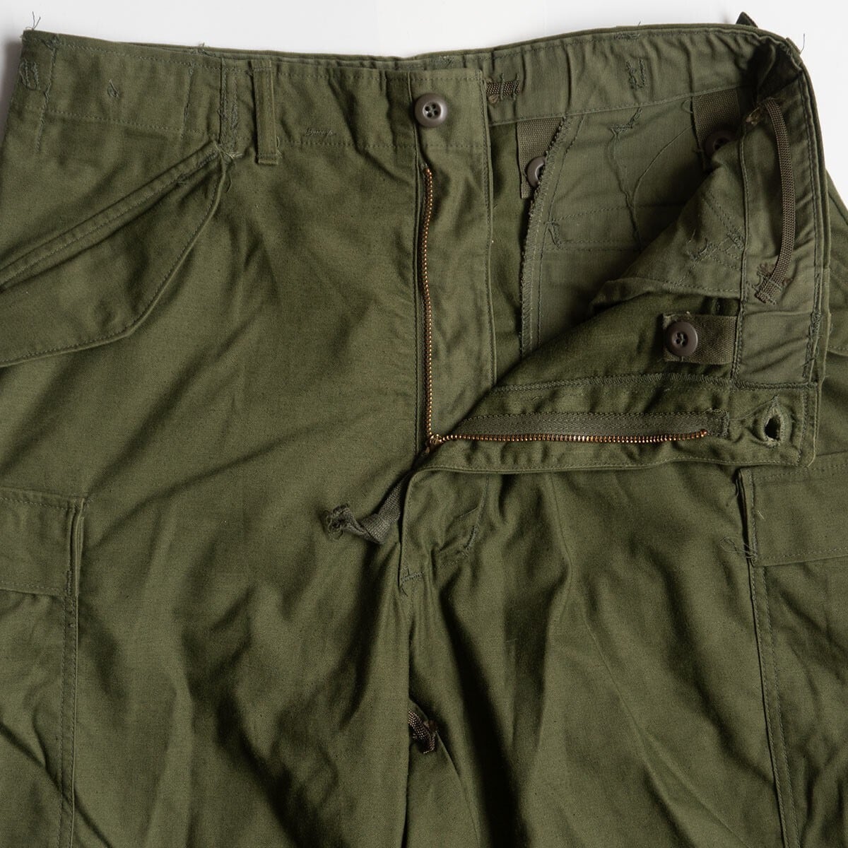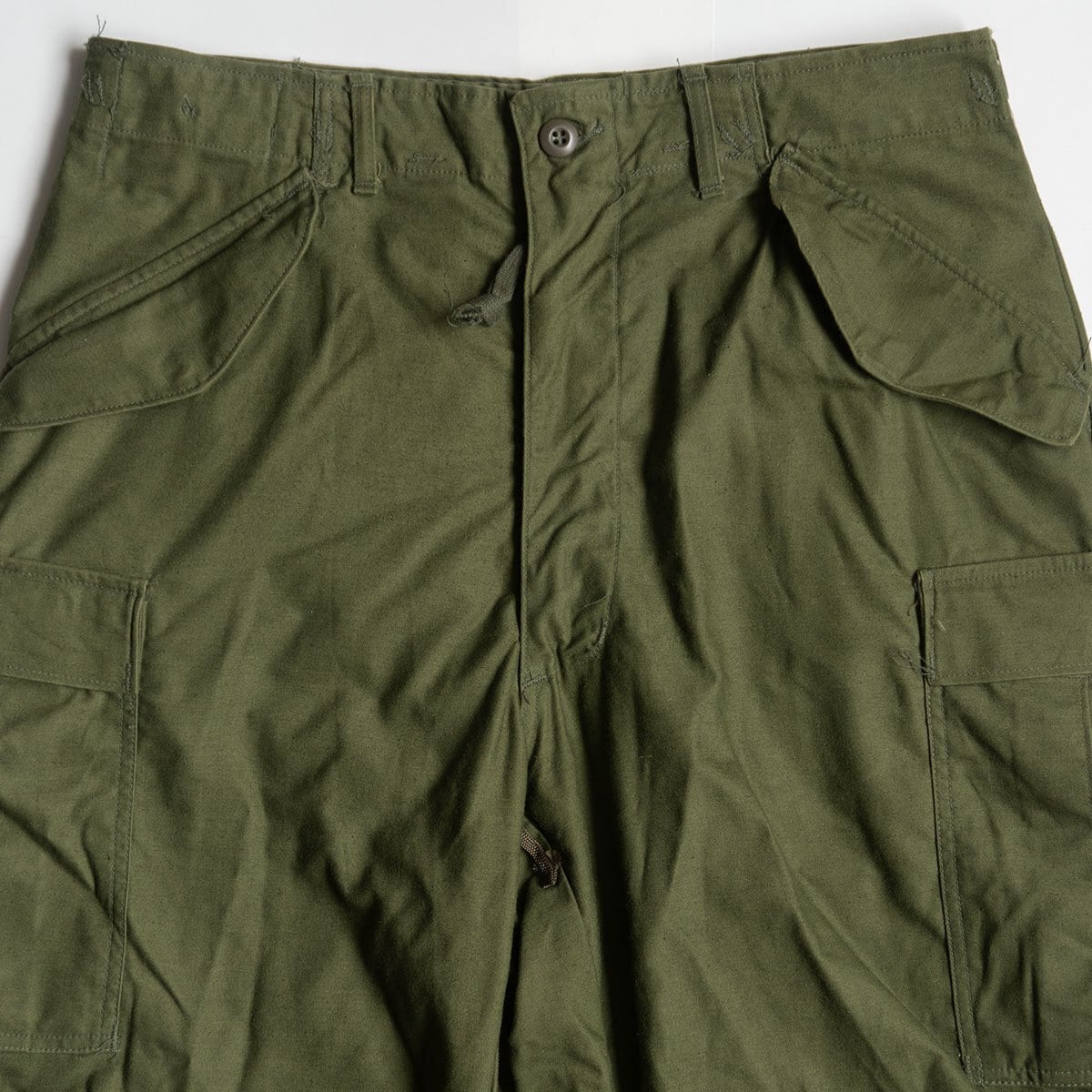 アメリカ軍が1965年に採用したフィールドパンツ M-65。多くのブランドがこれを元にカーゴパンツをリリースしています。ズドンとしたストレートシルエットが魅力です。計6つのポケット。全てフラップ付きでスナップボタンで留められます。ジッパーフライ、ウエストのサイド部分にはアジャスターが付いています。お探しの方や気になる方は是非。