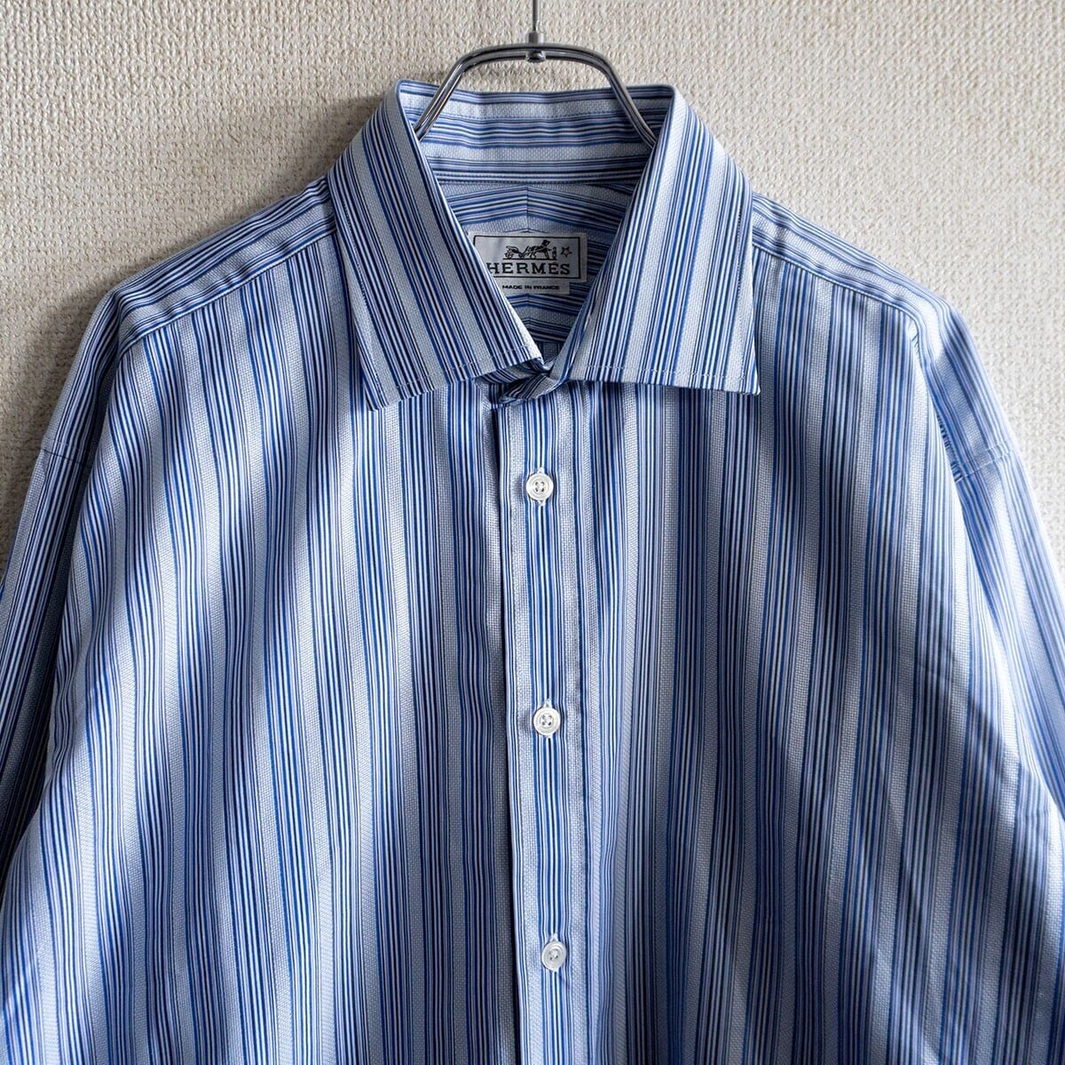 【高級品】 HERMES 【セリエボタン コットン ストライプシャツ】41 16 エルメス フランス製 s2604039