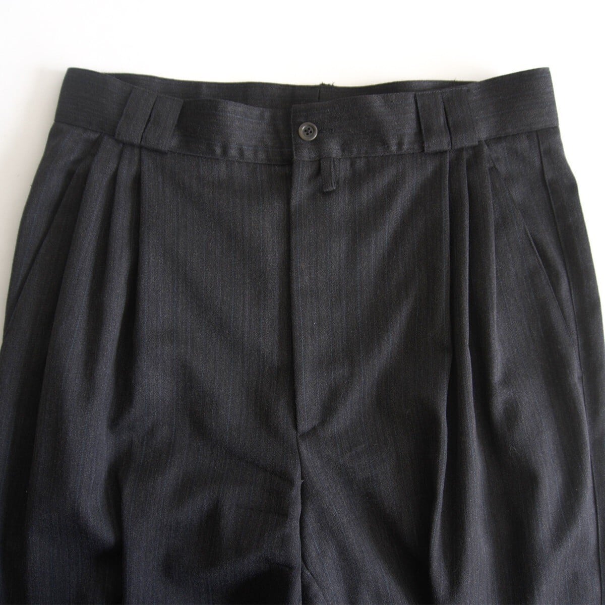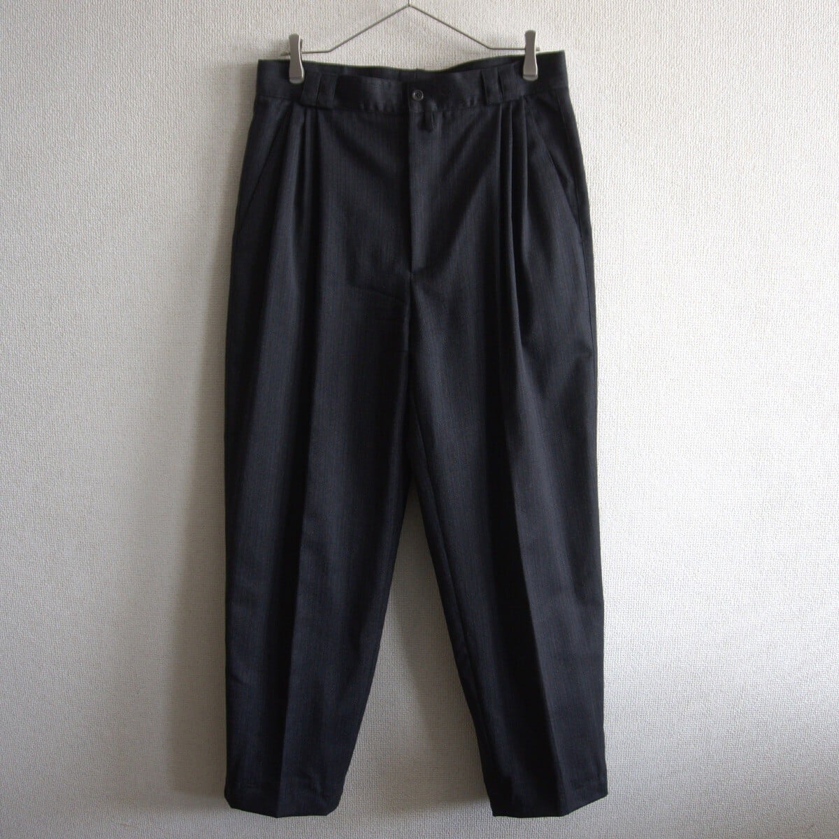 ウール素材の3タックスラックスパンツ。程よいワイドストレートな抜群のシルエットのお品物です。良いものをお探しの方は是非。