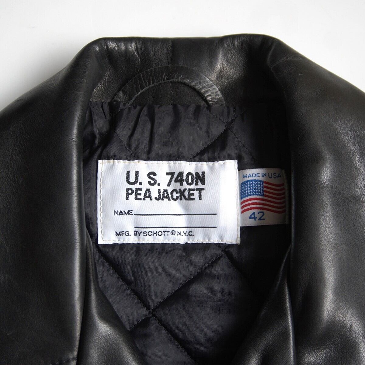 【美品/ビッグサイズ】SCHOTT【140/レザー ピーコート】42 ブラック レザー アメリカ製 ショット 26040210