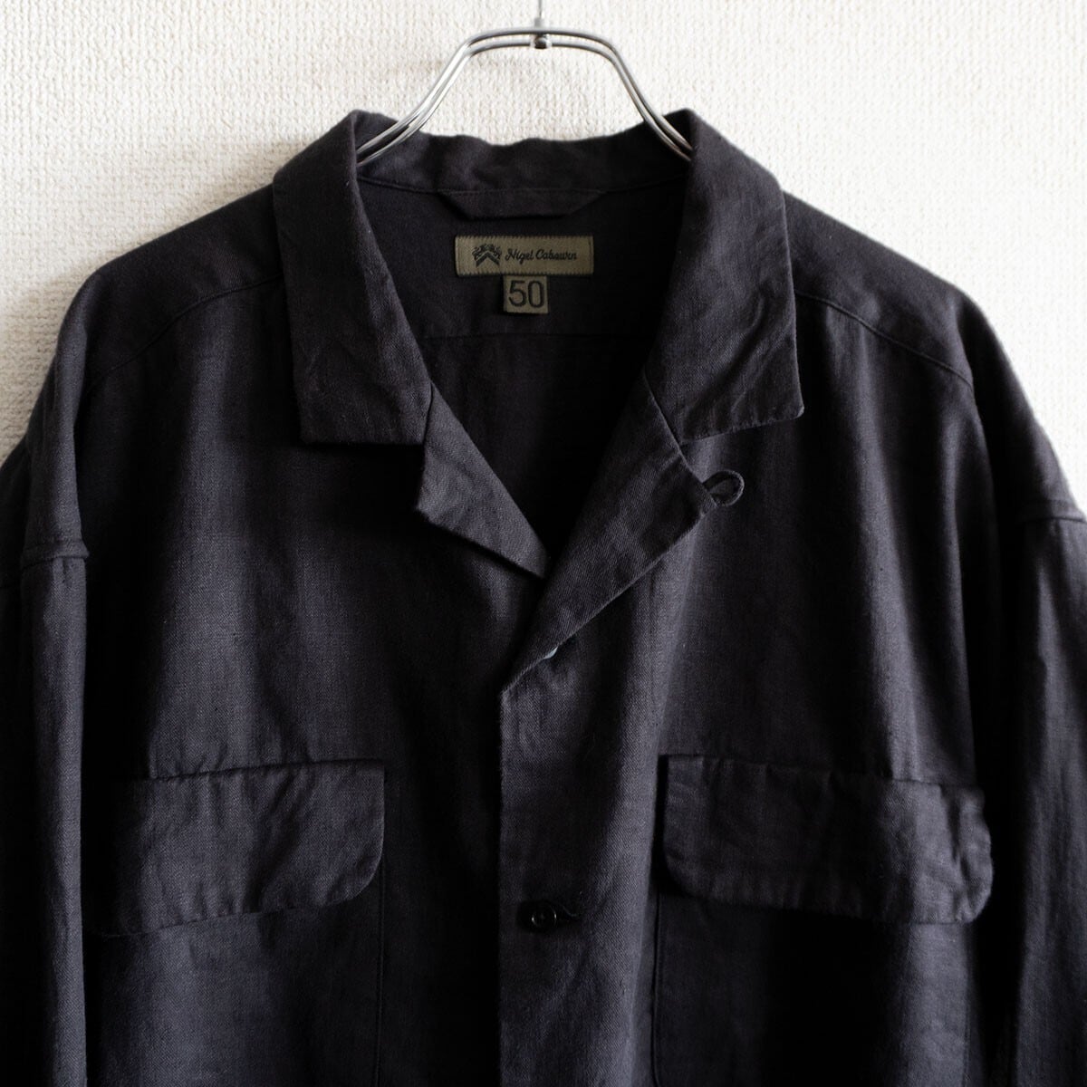 【ビッグサイズ】NIGEL CABOURN 【OPEN COLLAR SHIRT LINEN FLEECE】50 ブラック ナイジェルケーボン シャツ s2604017