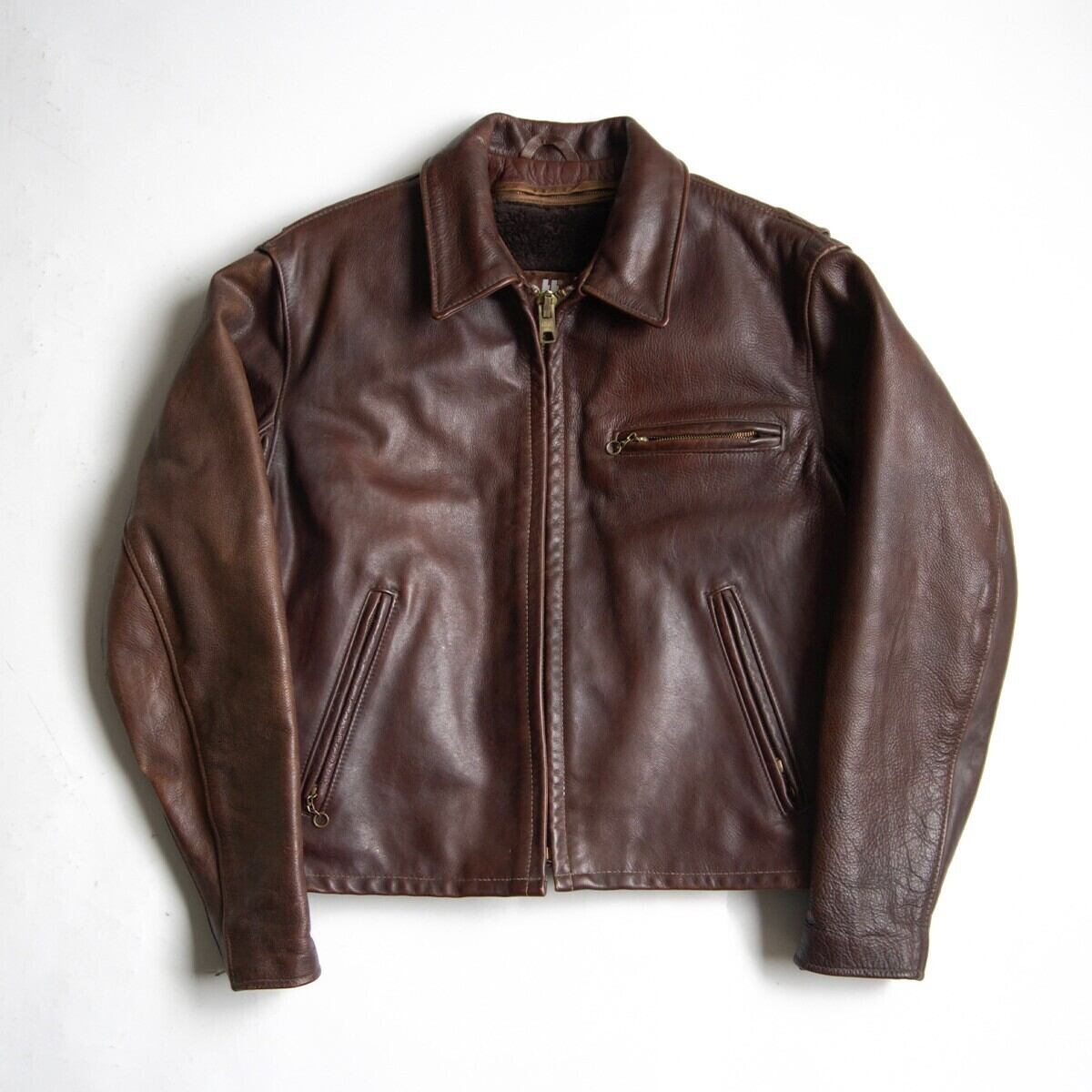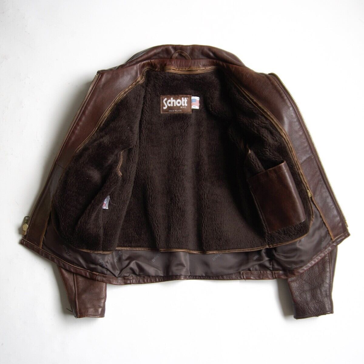 【美品】SCHOTT【643EVS/シングルライダースジャケット】40 襟 ブラウン レザー アメリカ製 ショット 26040228