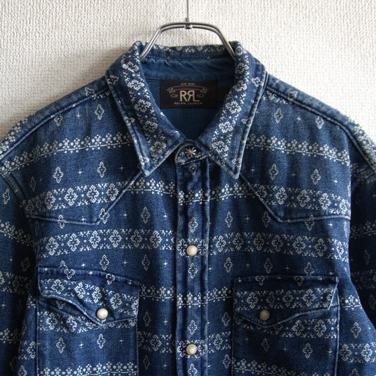 【名作】RRL【PRINTED BANDANA WESTERN SHIRTS】S インディゴ ウエスタンシャツ ダブルアールエル s2604079