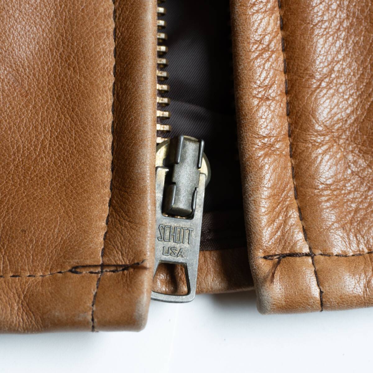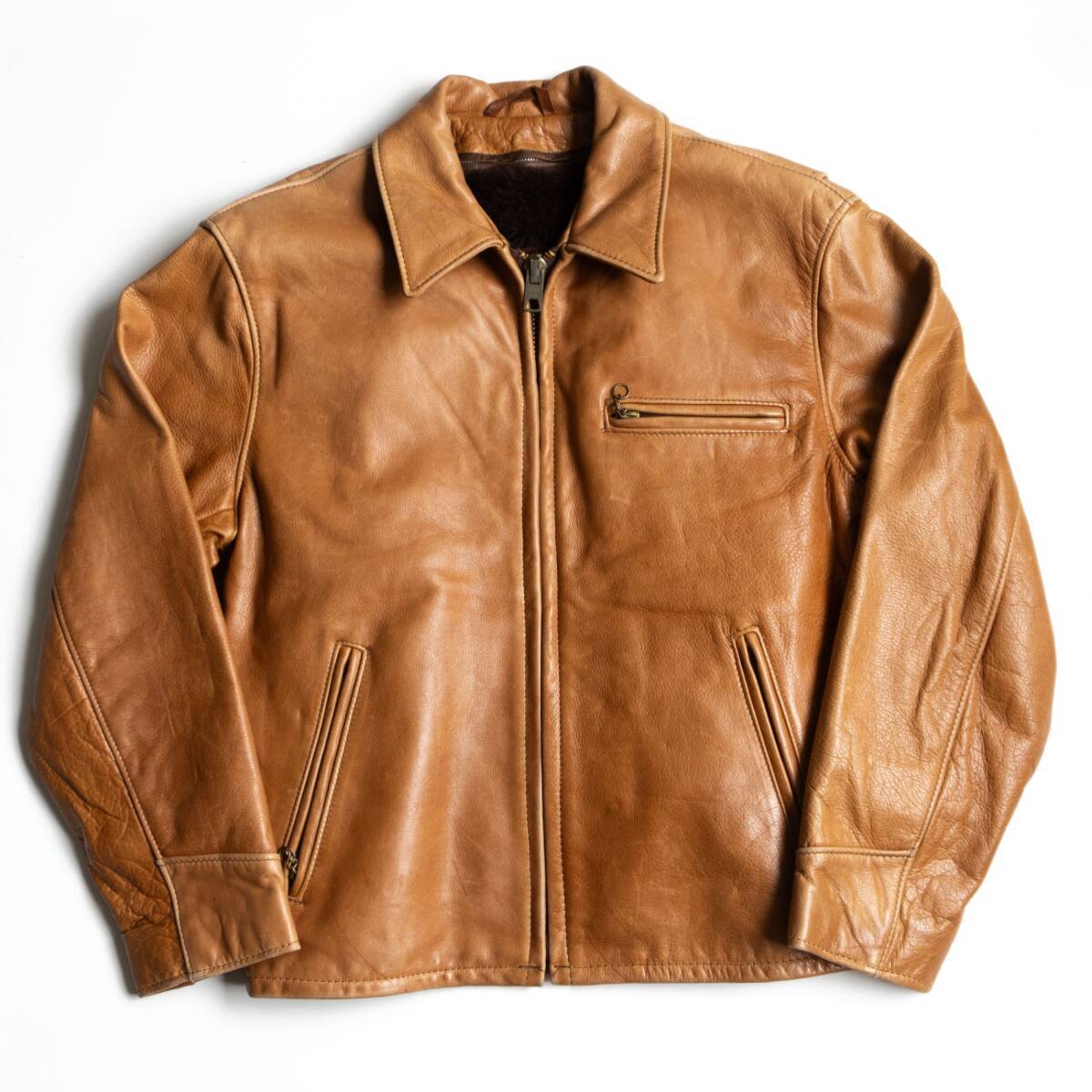 【雰囲気抜群】SCHOTT【AT101/シングルライダースジャケット】40 キャメル 襟 レザー アメリカ製 ショット 26040387