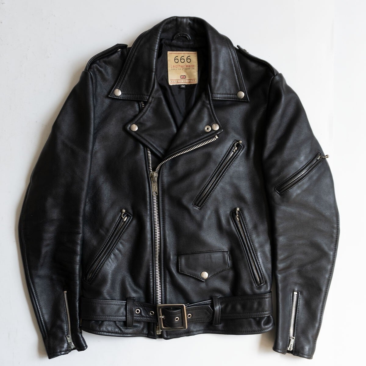 【美品】666 triple six【ステアハイド フロントベルト ライダースジャケット】34 レザー トリプルシックス 26040408
