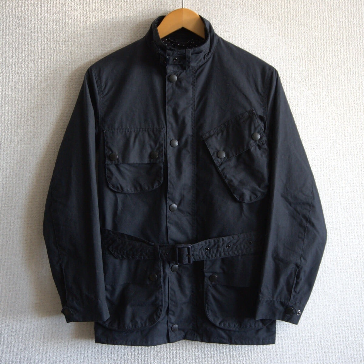 【美品】BARBOUR【SL International Jacket】34 ブラック インターナショナル オイルド モーターサイクル ジャケット 26040375