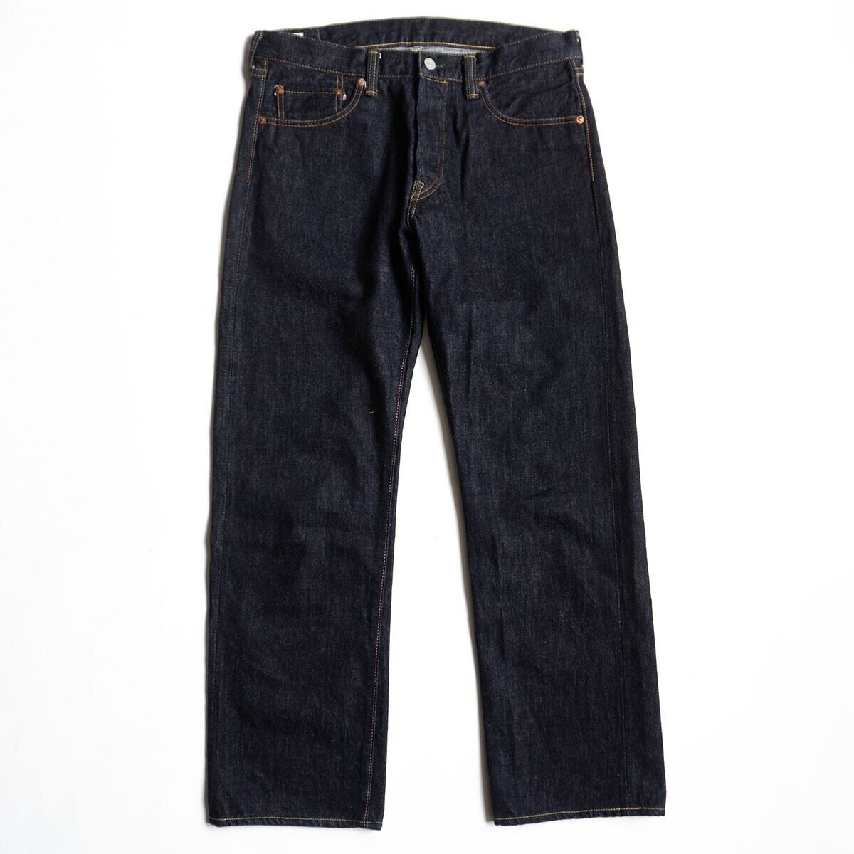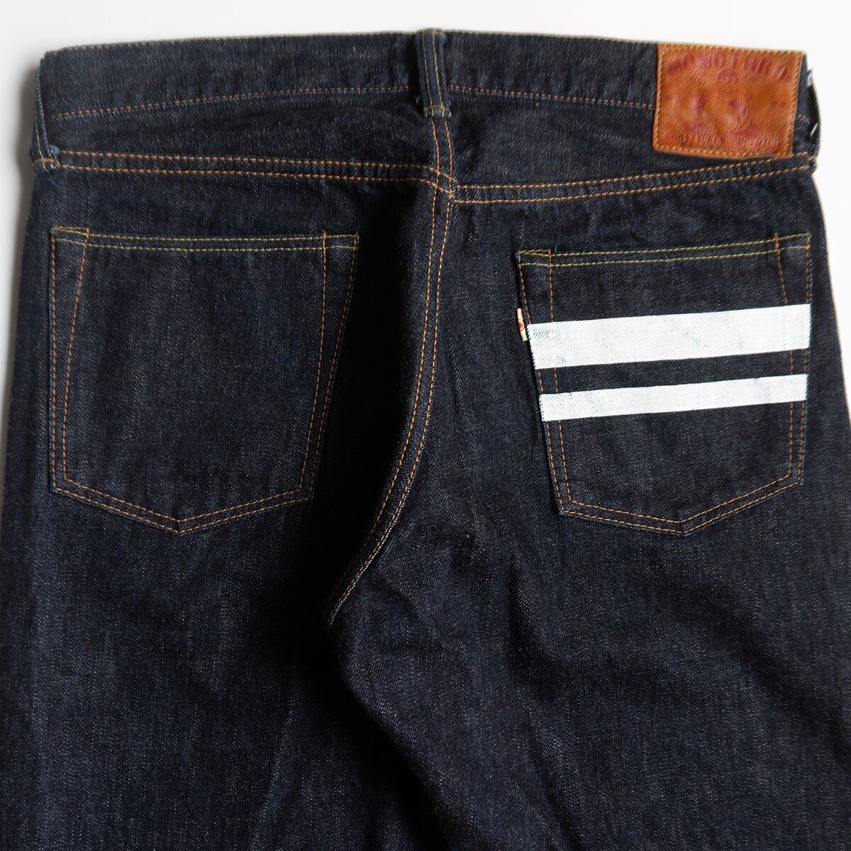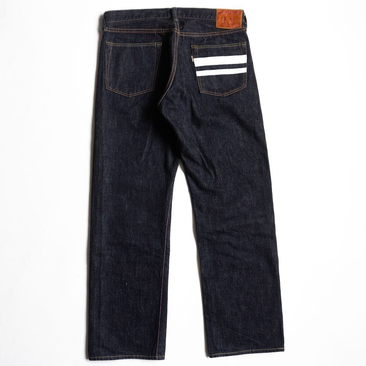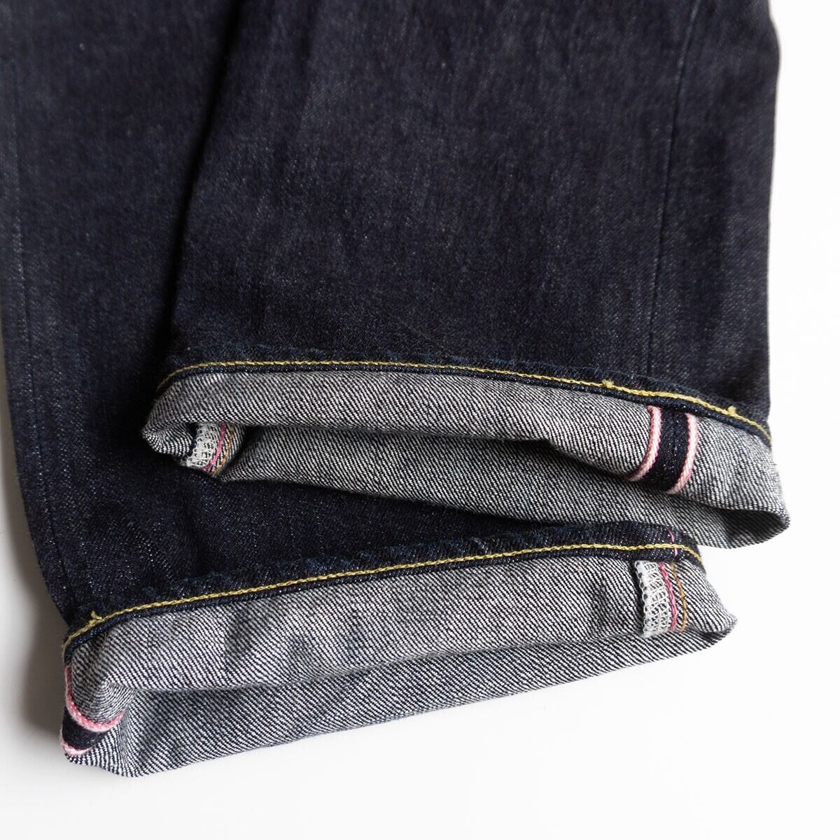 ロープ染色を繰り返し特濃インディゴブルーに染めたジンバブエコットン使用した1本。モモからスソまでは若干のゆとりを持たせたミドルフィットです。これから経年変化をお楽しみいただけます。