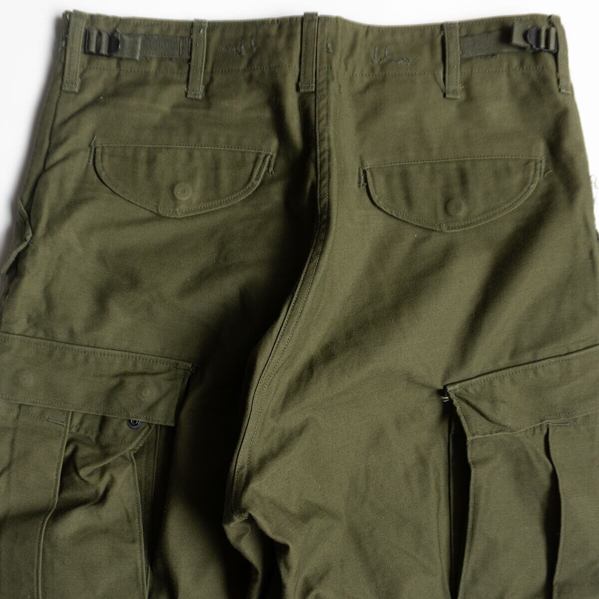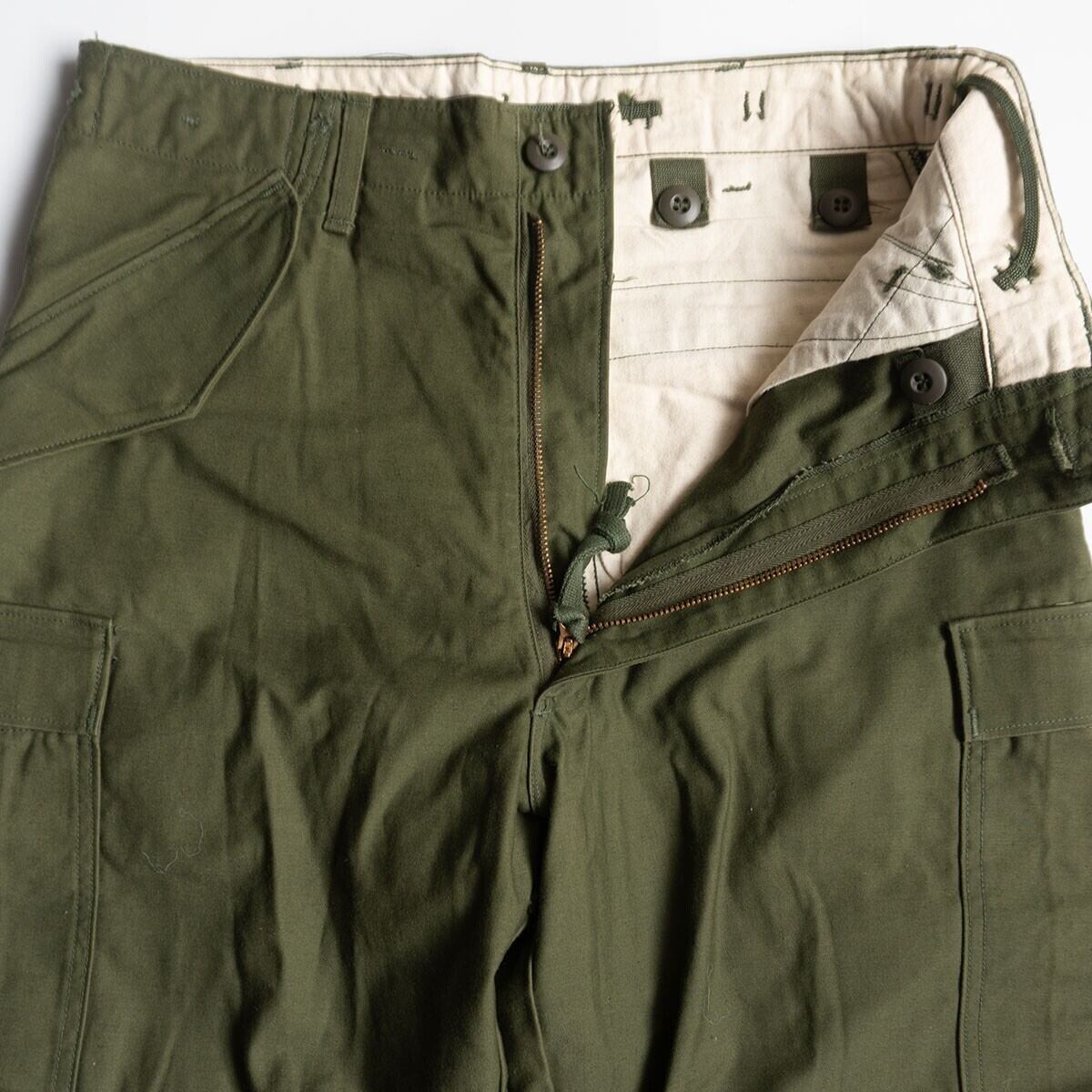 アメリカ軍が1965年に採用したフィールドパンツ M-65。多くのブランドがこれを元にカーゴパンツをリリースしています。ズドンとしたストレートシルエットが魅力です。計6つのポケット。全てフラップ付きでスナップボタンで留められます。ジッパーフライ、ウエストのサイド部分にはアジャスターが付いています。お探しの方や気になる方は是非。