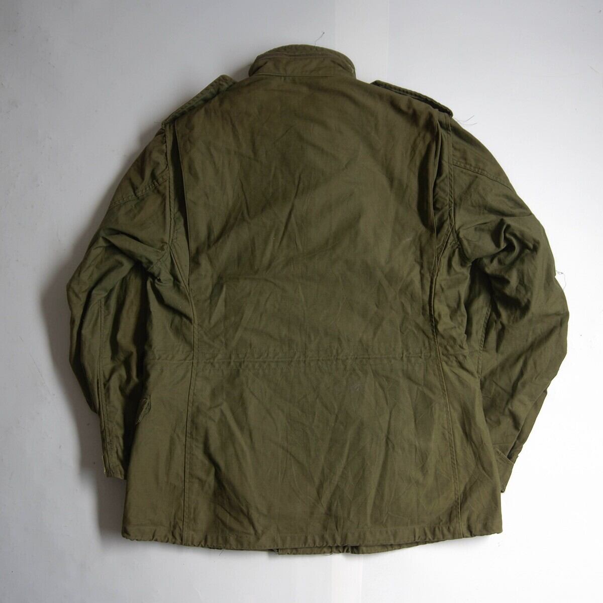 中古品でございます。左袖に薄らヤケがございます。また保管時の薄ら汚れがございます。その他着用感はそれほど多くなく綺麗な状態でございます。ヴィンテージ品になりますので神経質な方はお控え下さい。