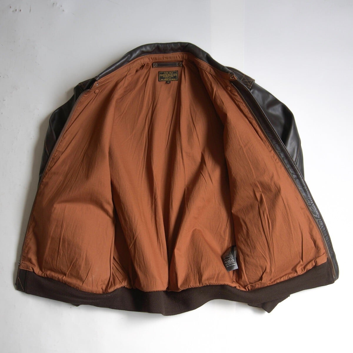 ホースハイドを使用したA-2。シンプルなデザインで着まわしやすい1着です。