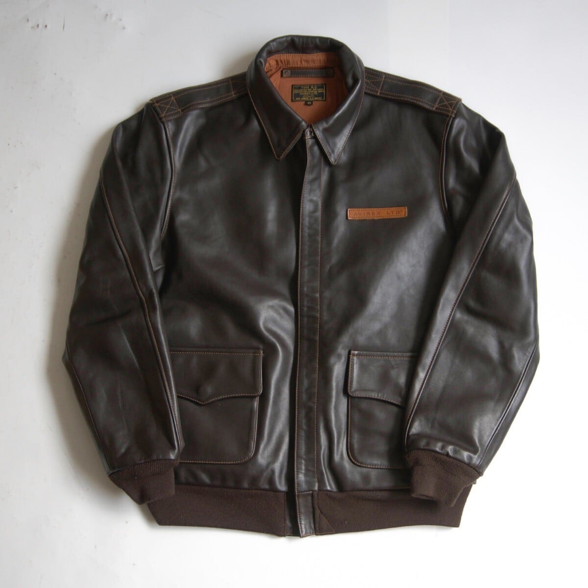 【美品/ビッグサイズ】AVIREX【A-2 ホースハイド フライトジャケット】 42 ブラウン レザー アビレックス 26040513